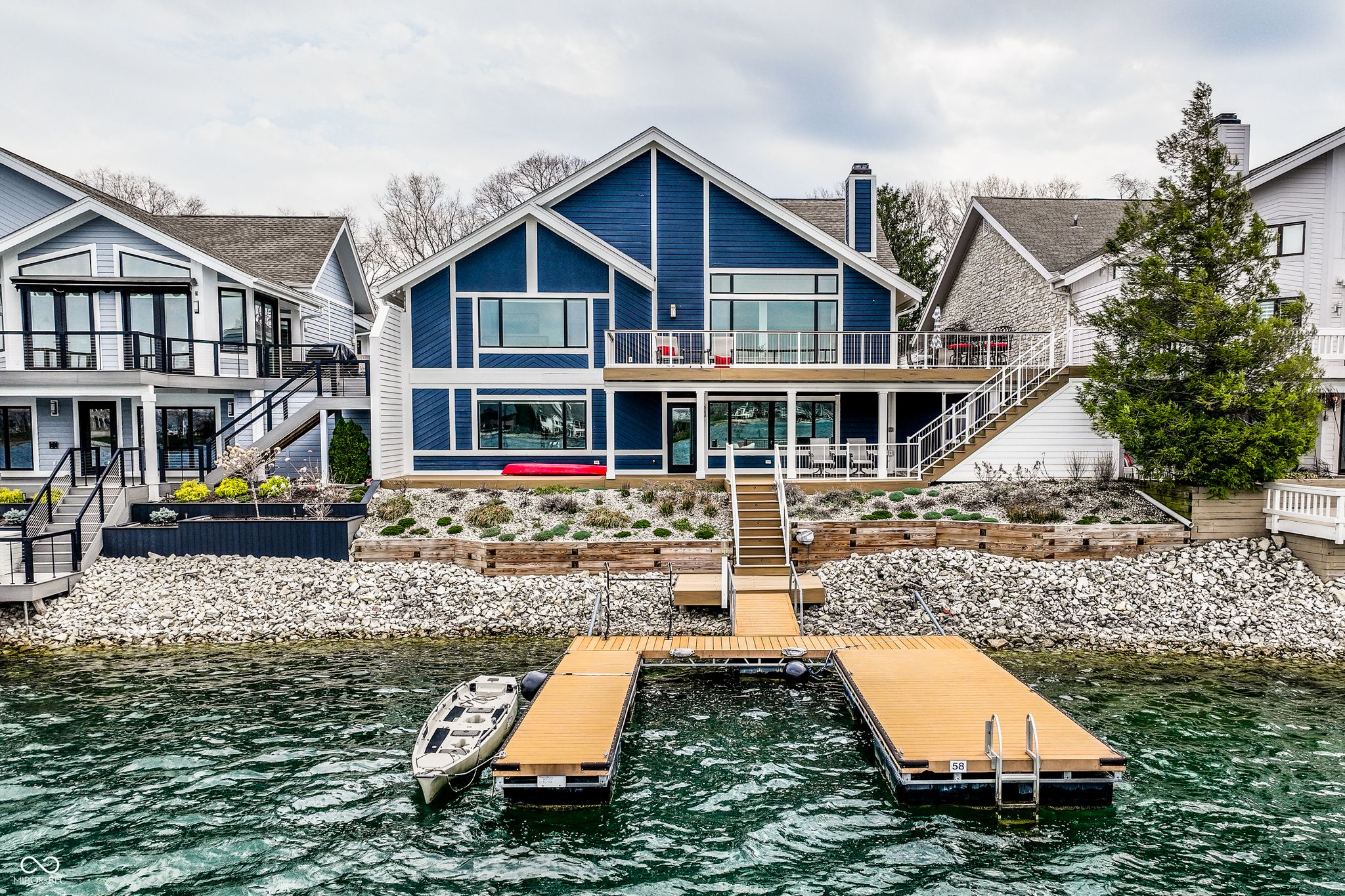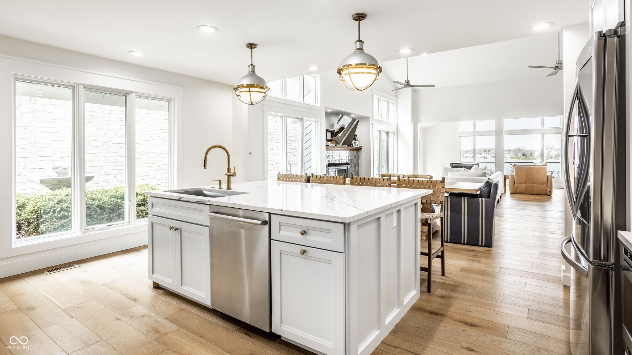 Beautiful lakefront home in sought-after Lake Clearwater! This 3-bedroom, 3-bath residence showcases thoughtful design and quality upgrades throughout. The gourmet kitchen flows seamlessly into a spacious great room featuring a dining space and a wet bar, perfect for entertaining. A striking see-through fireplace creates a warm ambiance both indoors and out on the patio. Enjoy breathtaking lake views from the sunroom, ideal for watching wildlife, sunsets, and passing storms. The primary suite offers serene water views, a large walk-in closet, and a beautifully appointed spa-like bathroom. The finished lower level features a family room with fireplace and wet bar, plus a third bedroom, perfect for guests or additional living space. Recent updates include new Pella exterior and sliding doors, high-efficiency HVAC, and lakefront retaining walls and landscaping. Move-in ready with all the major updates already completed, just relax and enjoy lake living!