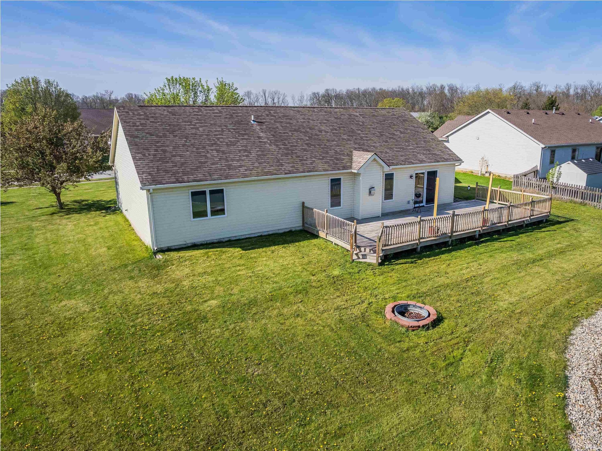 Welcome home! This freshly painted, 3 bedroom 2.5, bath home offers an abundance of natural light, vaulted ceilings and a scenic view of the pond. The spacious layout provides plenty of room, while the backyard offers a large deck perfect for relaxing or entertaining. The primary bedroom offers a large closet and a dual vanity in the bathroom. The 3 car garage is also a nice addition.