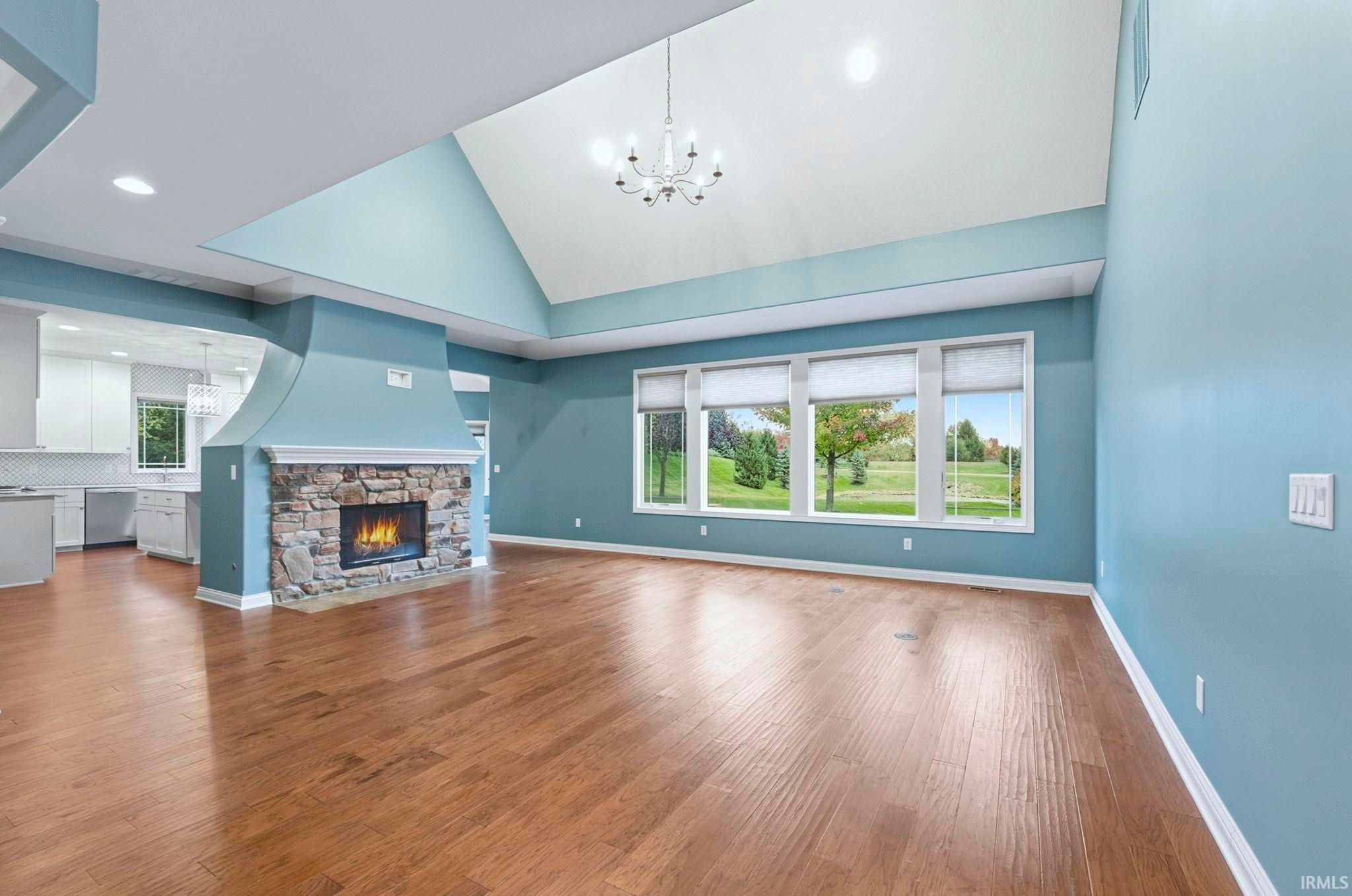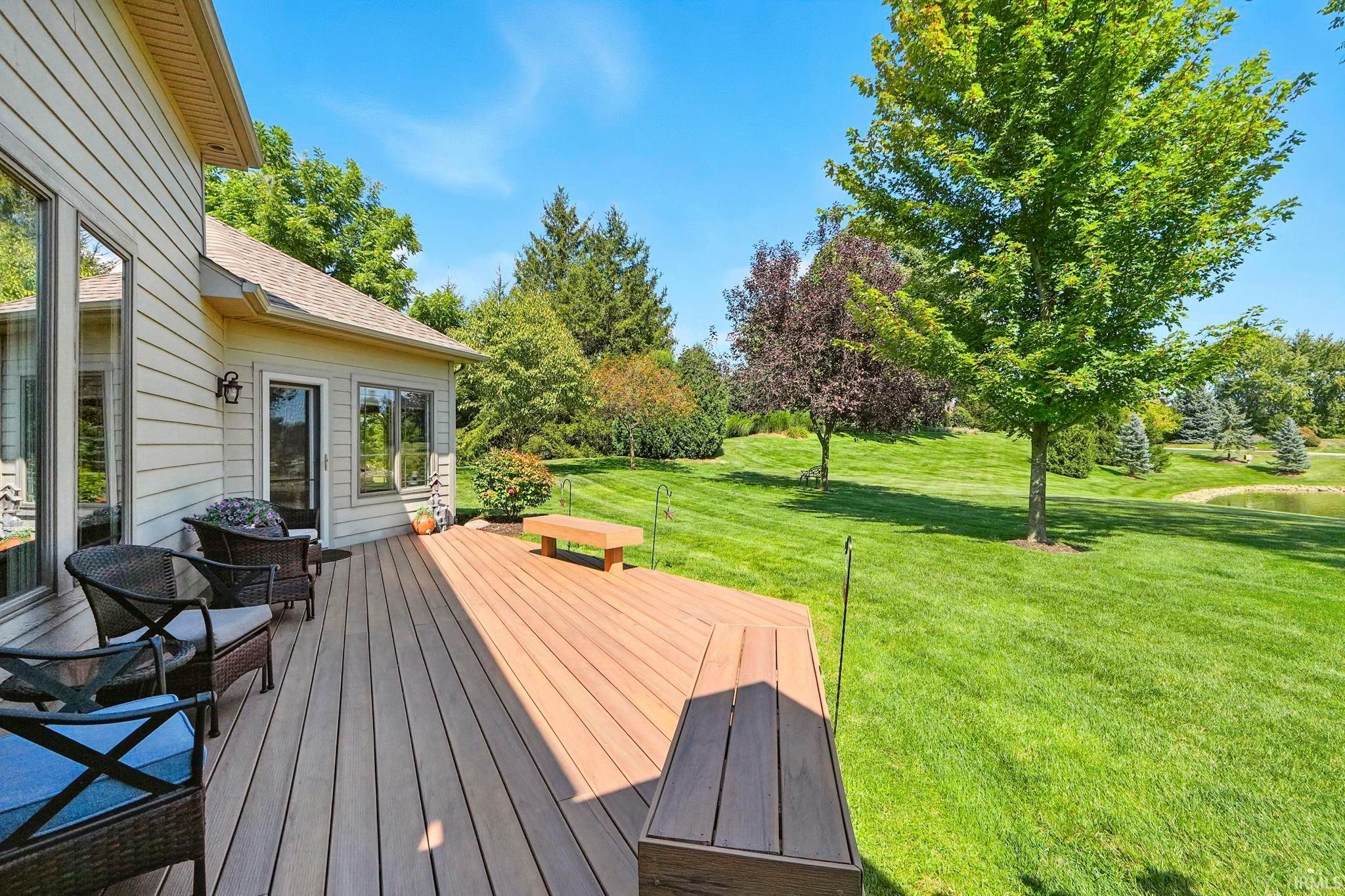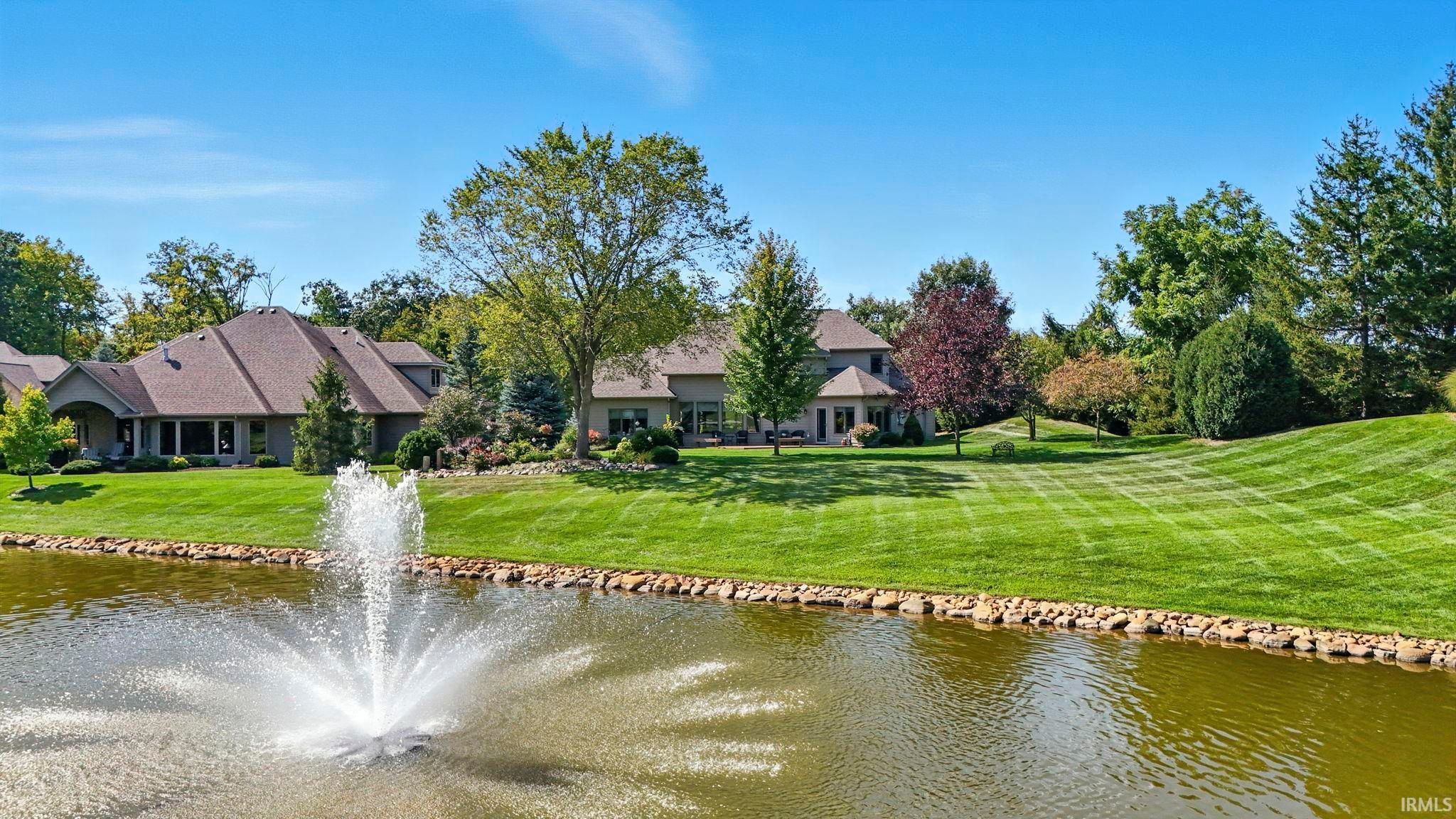 OPEN SUNDAY 1-3---Views, views, views! Spacious backyard sitting directly on the community pond with beautiful fountain-- with lush landscaping and trees abounding. This 2600sq ft home is situated on a quiet culdesac, offers a main level primary suite, new Taj Mahal quartz countertops, new custom tile backsplash in the kitchen, fresh paint and warm hardwood floors. The generously sized main floor boasts a ton of natural light, spaces for formal dining and breakfast nook, and an office with french doors! The quarterly villa fees include lawncare, fertilizing, trimming, mulch, snow removal and window washing 3x per year. Irrigation system included. This turn key home brings main level living with plenty of room upstairs for guests, office, grandkids and more.
