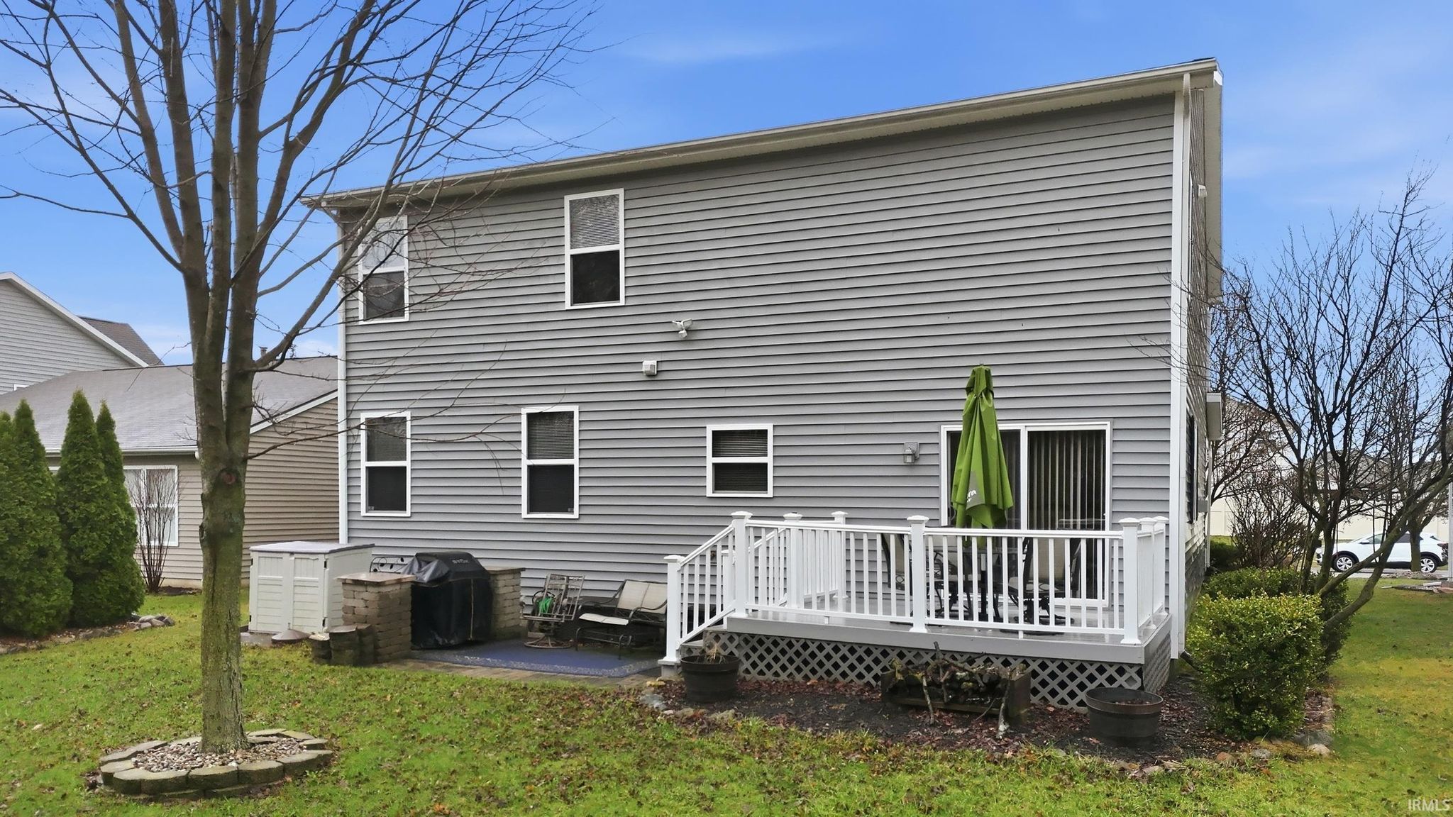If you are looking for a spacious home with a finished basement take a look at this property!! With 3545 finished square feet, plus 421 unfinished storage space in basement, this home has so much to offer. The outside provides a delightful covered front porch and back deck plus brick paver patio, all set against a tree-lined backyard. Step inside to the two-story living room featuring a gas log fireplace on a switch. The dining room and eat-in kitchen are very spacious, with plenty of cabinets, counter space, a pantry, and full set of appliances. The main floor primary suite provides a 16x14 bedroom, and en suite bathroom with 36” high double sink vanity, walk-in shower, and walk-in closet. The upper level offers 3 big bedrooms (2 have walk-in closets), and a 24x20 Family Room / Classroom / playroom. The finished basement provides another family room, pool table area (remains), ½ bathroom, and unfinished mechanical room + storage, including wooden built-in shelves, and pegboard. Sump pump + Battery back-up sump pump. Storage galore! Fresh interior paint in many areas; air conditioner replaced 7/25, exterior power washed and deck primed & stained 7/25. Garage features workbench, storage shelves, plenty of outlets, and hose connection. Minutes to Sweetwater, I-69 at Goshen or Lima Rd. Easy trip downtown or to nearby schools, shopping, PFW, Columbia City.