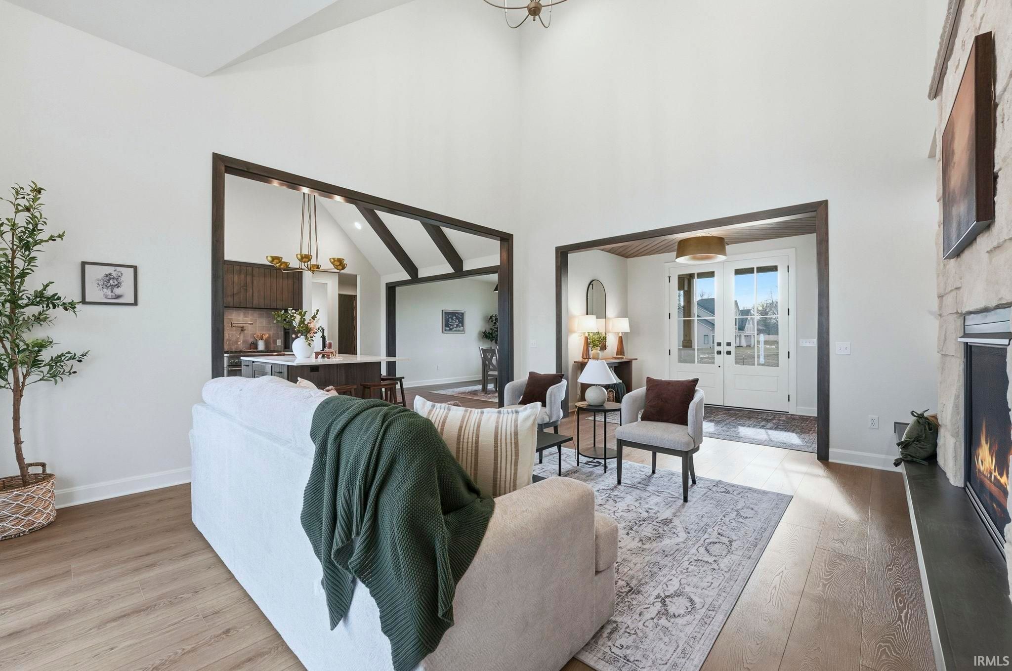 OPEN HOUSE SUN. 2/22 1-3 P.M. Now complete and ready for purchase! This GORGEOUS new floor plan by Prime Homes is an "open but not TOO open" concept. This space is so relaxing you immediately feel right at home! The stone and wood detail carry through the home beautifully and make every spot truly eye catching! This masterpiece features oversized bedrooms, zoned heating and air for ultra comfortable living, tiled showers in each bathroom, 8 ft. doorways and a large Butler Pantry. Sink into comfort in separate spaces for gathering or just enjoy the quiet. The deck just off the great room with a grand sliding glass door is a welcoming spot to sit by the fire and enjoy the tree lined setting! This home is truly a must see in person!