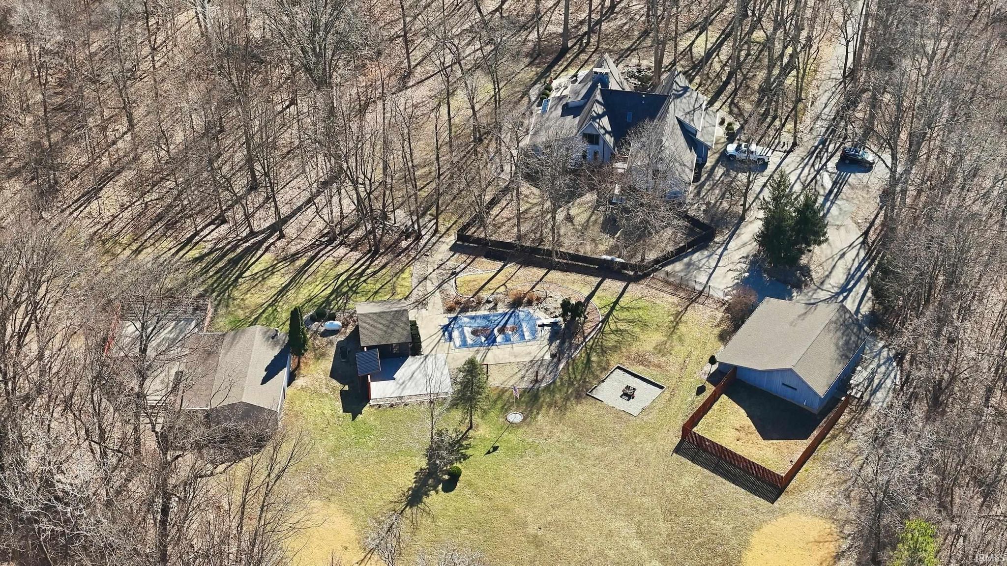 Tucked away on just over 18 acres, this beautifully updated estate offers over 4,200 square feet of refined living in a private serene setting. Featuring 5 bedrooms and 3.5 baths, the home blends modern updates with timeless design, including a striking floating staircase that makes an unforgettable first impression. Inside you'll find soaring vaulted ceilings, rich stone accents and a dramatic floor to ceiling stone fireplace. This creates a warm yet elevated living space filled with natural light. The stunning updated kitchen anchors the home, ideal for both everyday living and entertaining while the spacious primary suite offers a relaxing retreat. Step outside to your own private escape with an inground pool, peaceful surroundings and a picturesque stream along the front of the property. The acreage offers endless room to roam, unwind or create your vision. Complete with 3 car attached garage and detached outbuilding, this property delivers space, style and privacy in one exceptional setting.