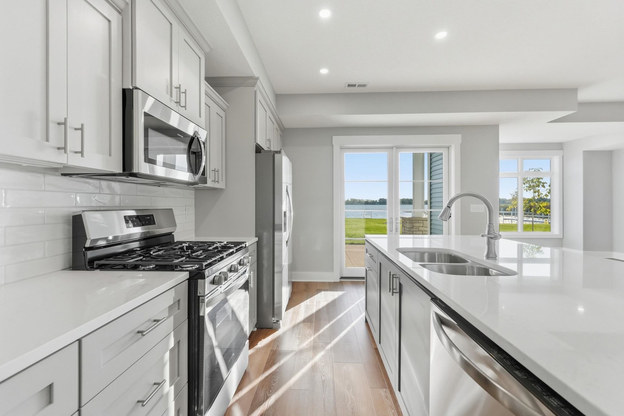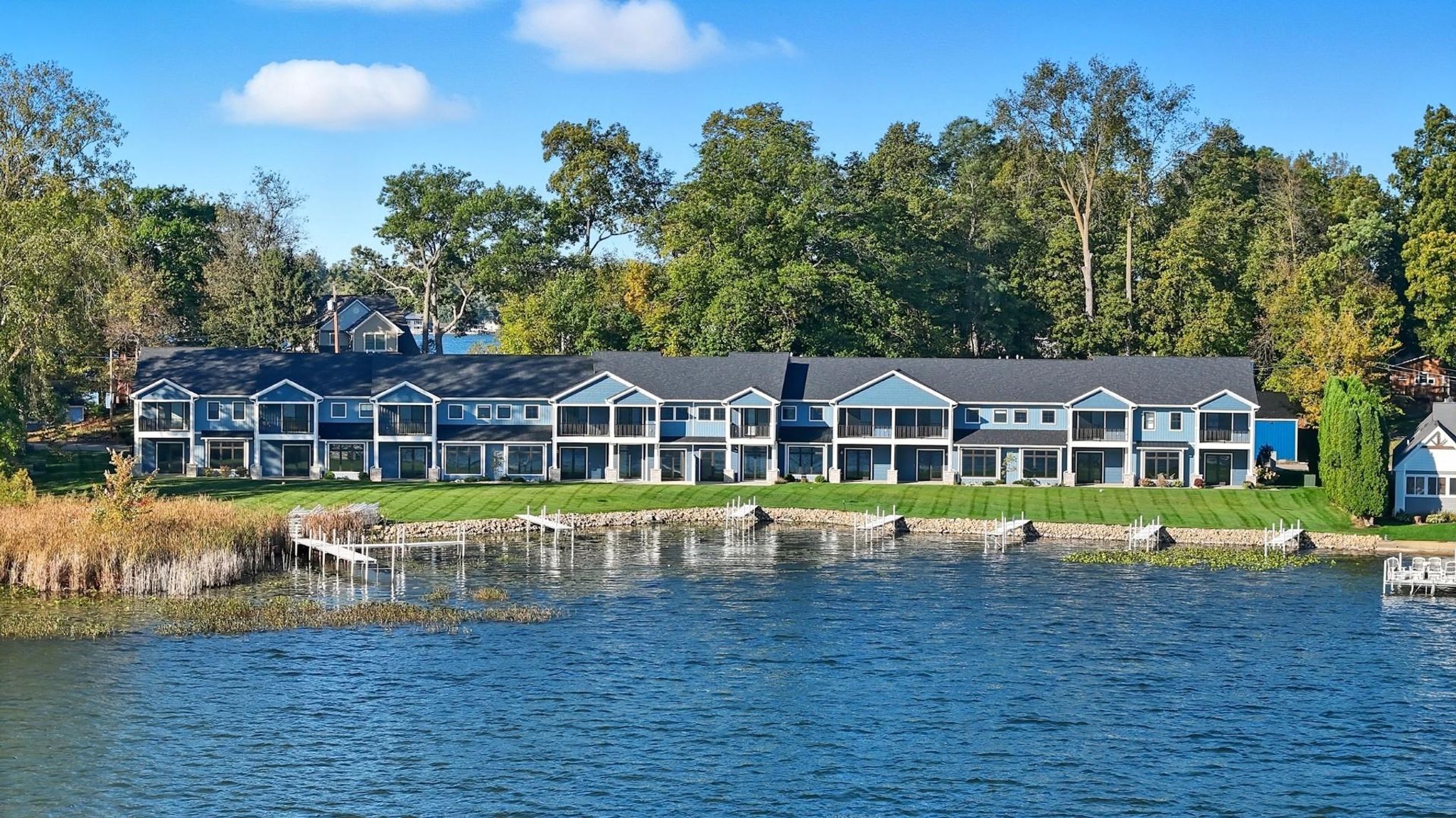Your lakefront condominium awaits! Brand new and ready for you. High quality products and finishes are included, as well as appliances! This three bedroom year around home has an attached garage and an include storage unit on site. The view from the kitchen, living room and primary bedroom is amazing. The sunrise over the lake will impress you every day. The bathrooms are very well appointed with ceramic tile, double vanity and the closets are all custom designed for ultimate storage. When you are ready for no maintenance living at the lake, this is it!