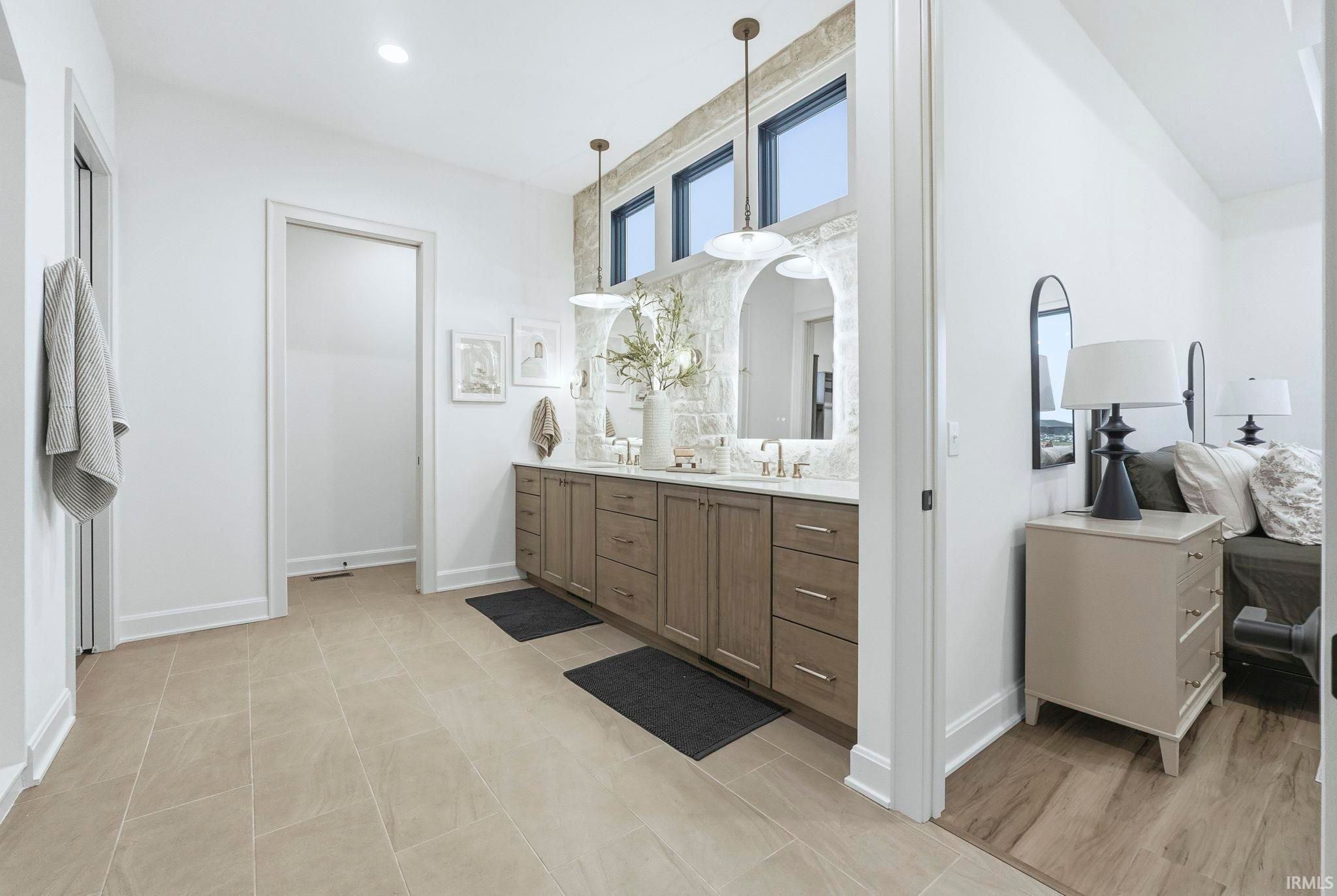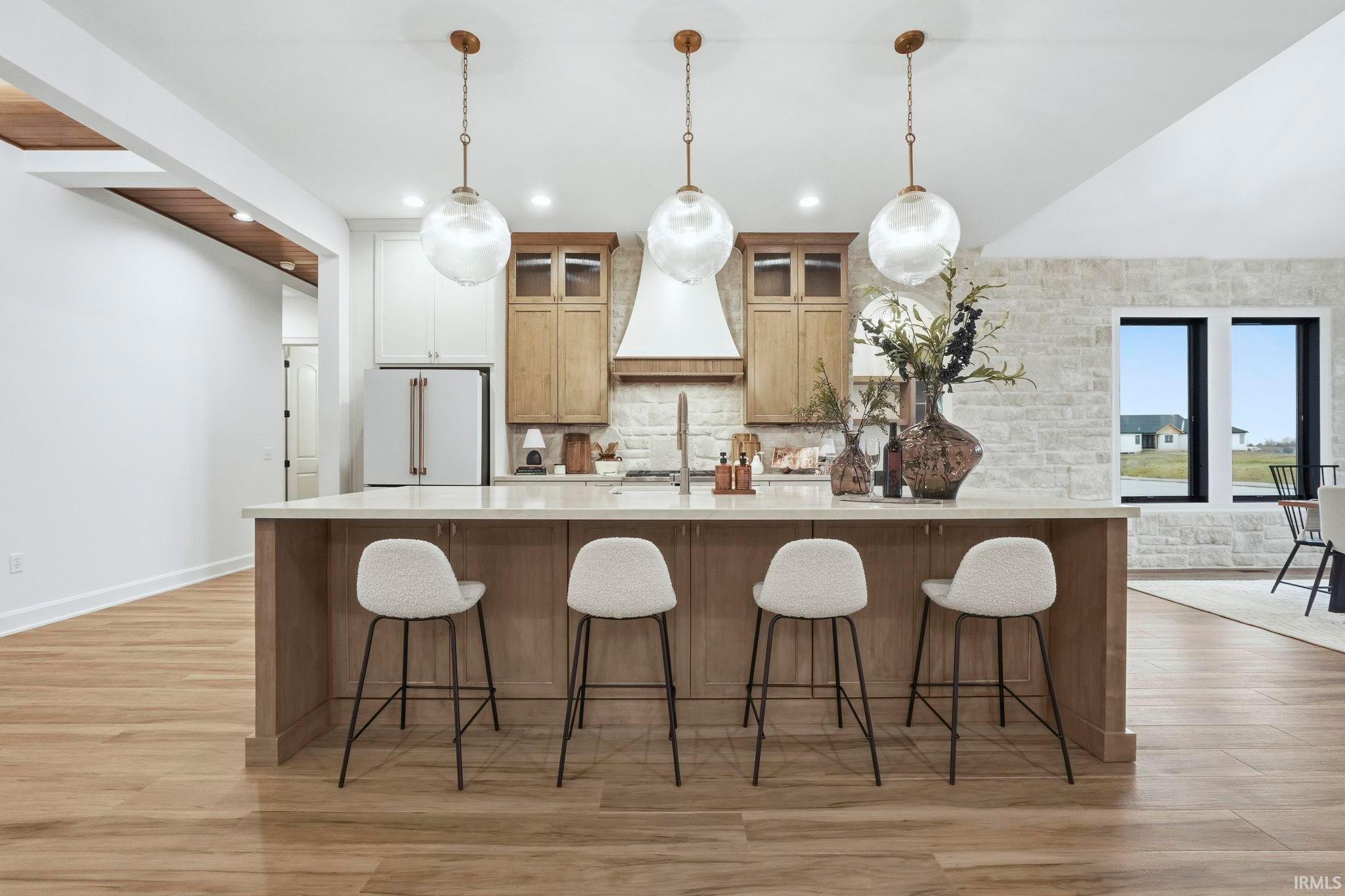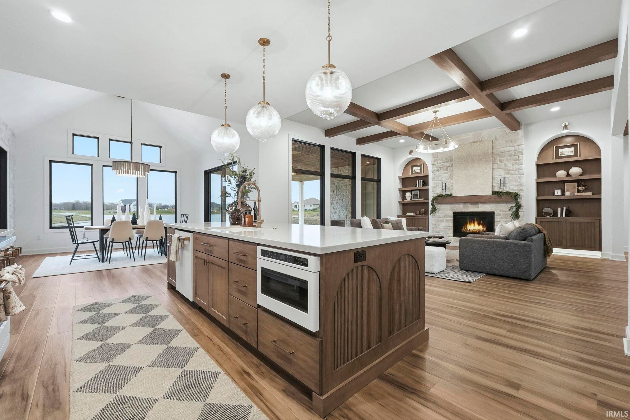 This jaw-dropping home is just completed and ready to view! You will love the stunning long pond views from every angle of this home! Natural daylight rolls in and accentuates the fine details everywhere such as the stone and wood accents, warm under cabinet lighting and 10 ft. ceilings with 8 ft. doorways. Enjoy AMPLE walk up attic storage, zoned heating and air and a Primary suite that will be your sanctuary! All bedrooms feature an ensuite bathroom and large walk- in closets. The secondary bedroom created as a flex space could easily double as another living space, game room or a next level guest suite! The frameless glass doors will be added to the tile showers for that finishing touch of beauty! Enjoy the oversized outdoor patio with a cozy fireplace for the quiet moments OR entertaining at it's finest! This home is a MUST SEE in person! Photos don't quite capture the true essence of this home!