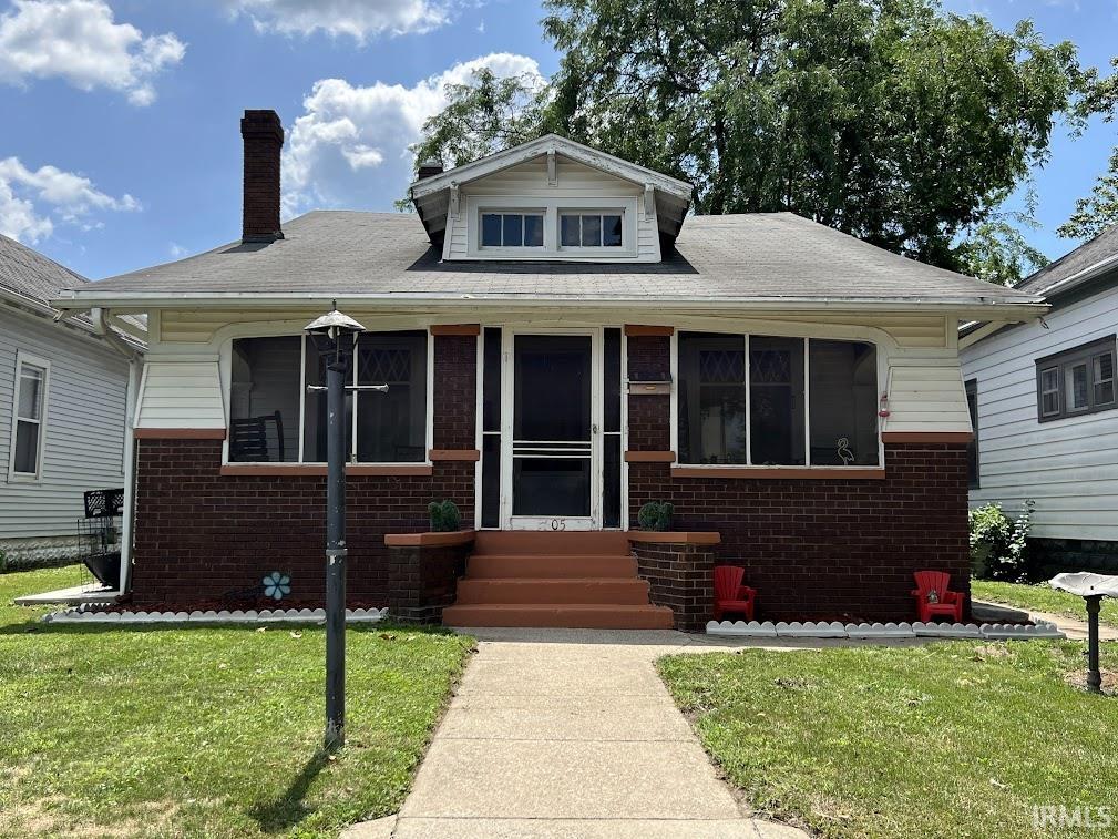 This adorable bungalow just might be what you are looking for! Enclosed front porch to enjoy the changing of the seasons. The centerpiece of the living room is the gas fireplace. You will also find built in china cabinets, French doors and lead glass windows in the living room. There are hardwood floors in the living room and bedrooms. The kitchen has updated cabinets, counters, back splash and ceramic tile flooring. The bath has been updated as well with subway tiled bath surround and decorative tile. There is a potential 3rd bedroom that could also be used as a home office. The walk in closet is now the makeup room. There is a good sized basement with updated HVAC and plumbing and room for extra storage. The attic is partially floored and is accessed by the wood attic ladder in the hallway. There is a patio in the back and a carport for off street parking. Super cute house!