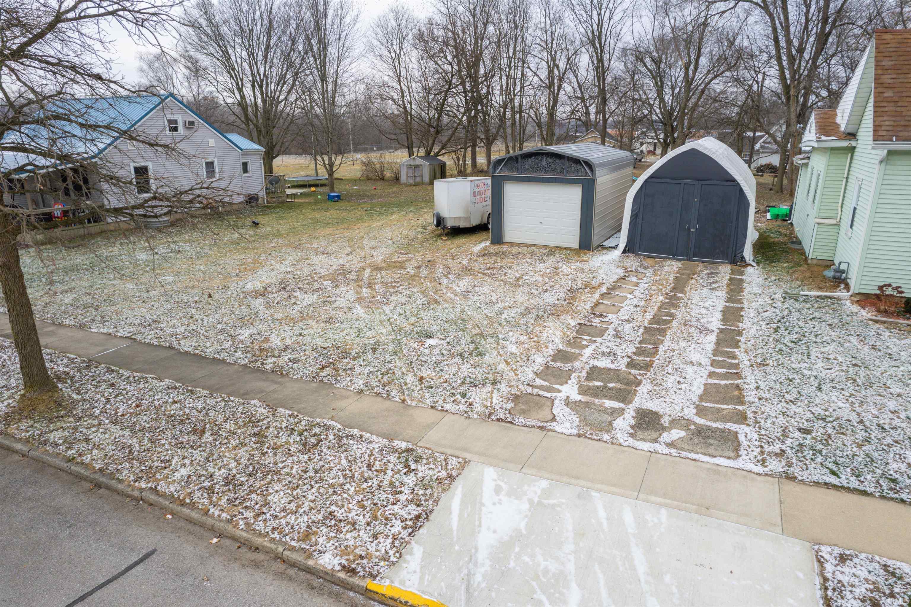 This lot has a metal quonset building that stays with the property. This building is not on a permanent structure, so is not taxed and can be moved to any location on the lot or removed. The Tent like structure does not stay and will be removed. Seller is offering this property for sale at $30,000 with the metal building or $25,000 with out. The lot can also be purchased along with the home across the street at 309 S. Maple St, or on its own.