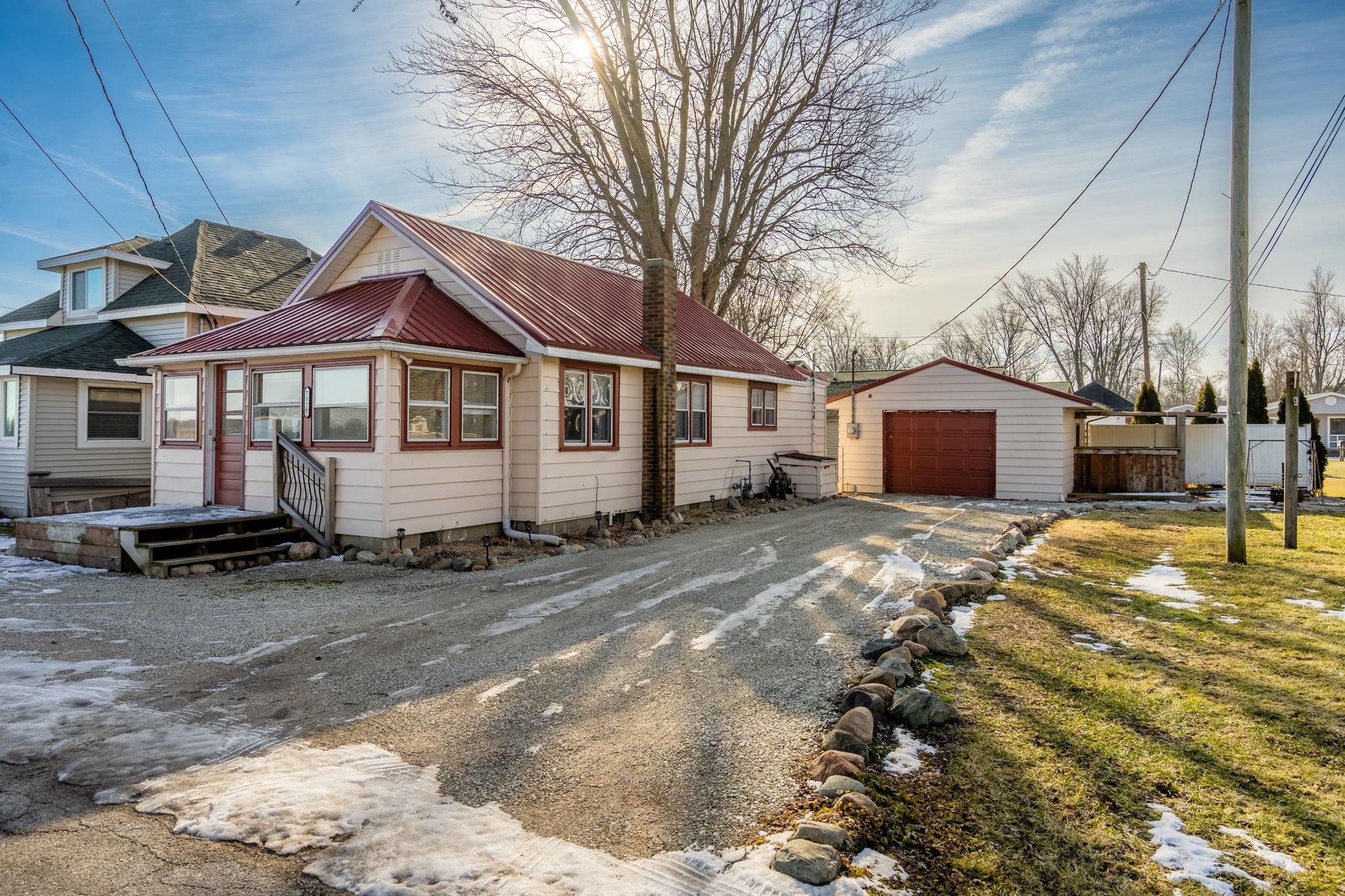 Steps from Hoffman Lake on a double lot! This is the perfect property to spend summer weekends at or live here year-round. Enclosed front porch with stunning lake views, open concept floor plan and plenty of updates throughout. Enjoy summer afternoons with friends at your personal outside bar! Double lot offers tons of space for yard games. Detached garage and large graveled driveway offer plenty of space for parking. Updated kitchen cabinets, countertops & floors throughout. Primary bedroom boasts large walk-in closet. Metal roof is only 7 years old, septic was pumped in summer 2022, and seller had sump pump installed. Pier space available for $25 a year. Public access / neighborhood park are just across the street. Hoffman lake is a 10mph max lake suited for large mouth bass fishing, paddleboarding, kayaking & a fireworks display every 4th of July!
