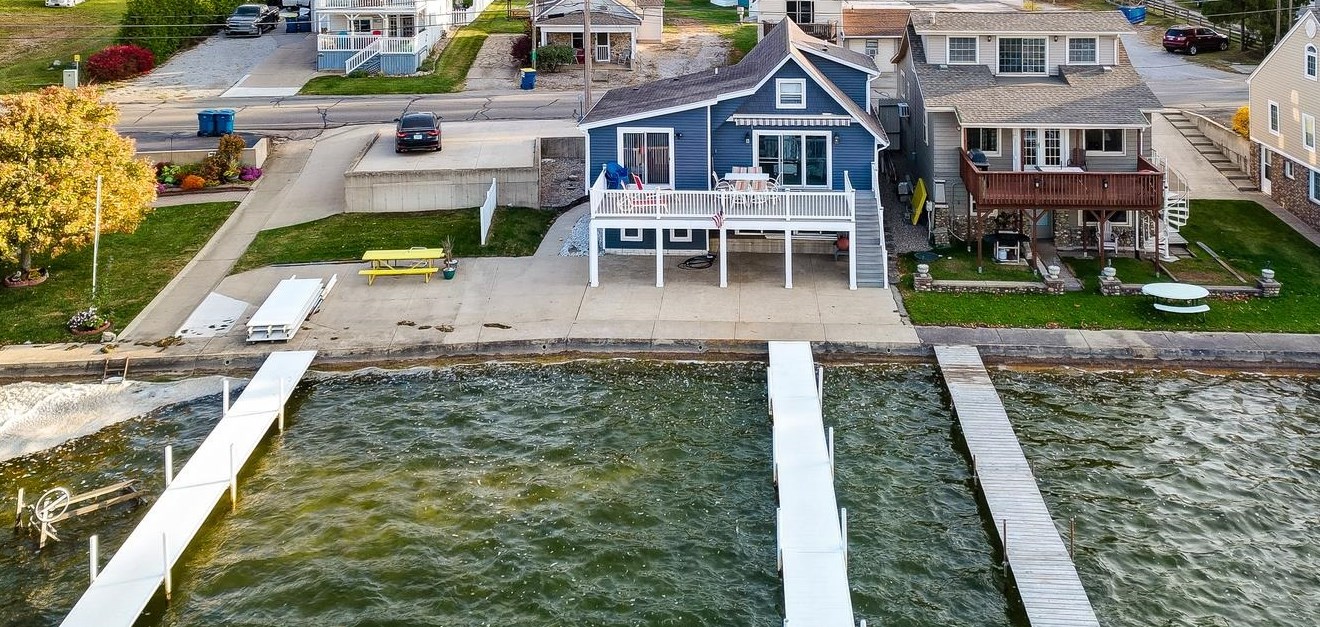 **Multiple Offer Notification until 3/19/23 by 4pm** This well designed lakefront home has 2,500 square feet of spacious living on 1st basin of Crooked Lake and boasts 3.5 baths and 4 bedrooms plus a convertible den that can be used as a 5th bedroom. Step right outside the living room or master bedroom to a large balcony for enjoyment of the lake. There’s an automatic Sunsetter awning for great outdoor living and a multi boat dock for boating included in the sale so you too can enjoy this beautiful lake. Sit back and relax while taking in the panoramic view of Crooked Lake's first basin, which can be seen from nearly all rooms of the house, including all of the bedrooms but two. Don't like steps? No worries, you will find everything you need is on the first floor including the kitchen, living room with great views of the lake, laundry room, a full guest bath and the ensuite master bedroom and bathroom. Upstairs are two more bedrooms and a half bath and the lower level offers a nice size family room, the 4th bedroom, a full bath and the extra room that can be used to fit your needs. It is in a great location just a few minutes from the heart of Angola, but still close to the interstate and local eateries on and around the lakes! Want minimal maintenance, then this is it; the home has been completely updated throughout the last couple of years, including brand new flooring and trim just put in the lower level. There is next to no yard, meaning you can enjoy all of your time on the lake!