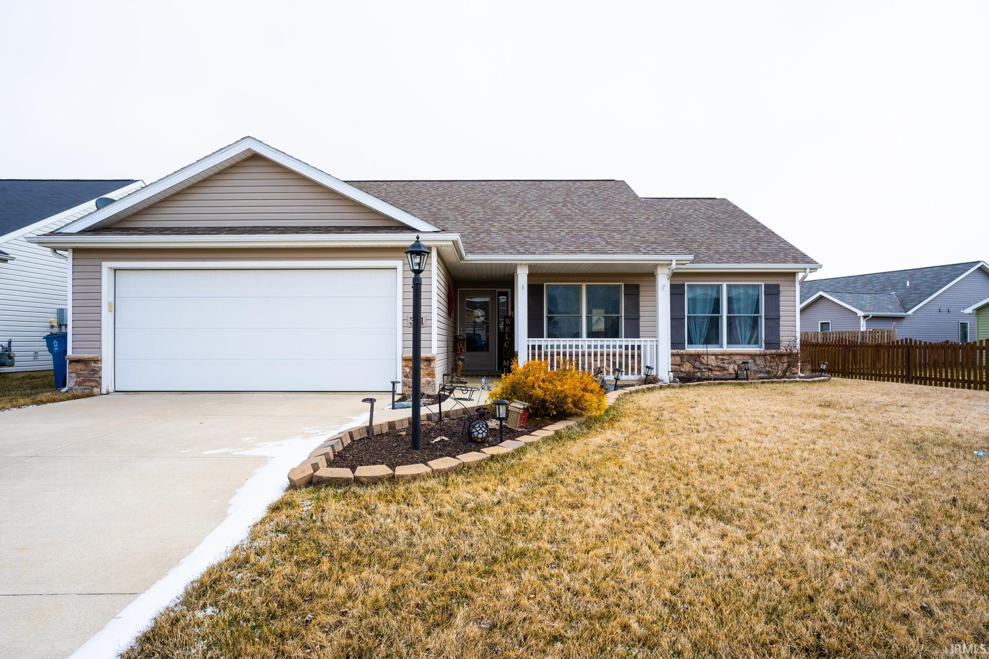Nicely maintained Granite Ridge home in the delightful Hamilton Meadows subdivision where the walking paths wrap around the neighborhood and ponds. This home is welcoming from the minute you pull into the driveway with beautiful landscaping and a front porch that leads into the open-concept great room with cathedral ceilings. The kitchen has new light fixtures, that complement the hardwood cabinets, and stainless appliances. Also in the Kitchen is a spacious island that allows for casual conversation and a dining nook. Just off the dining nook is a patio door that brings an abundance of natural light before leading to the private backyard complete with a 6' privacy fence new in 2022. This home has many new upgrades throughout including engineered hardwood flooring. The master en suite includes a large closet and tiled bath with lots of room on an expanded counter. An attached 2-car garage and a storage shed for lawn equipment. With a convenient location near schools, hospitals, family entertainment, and I-69.