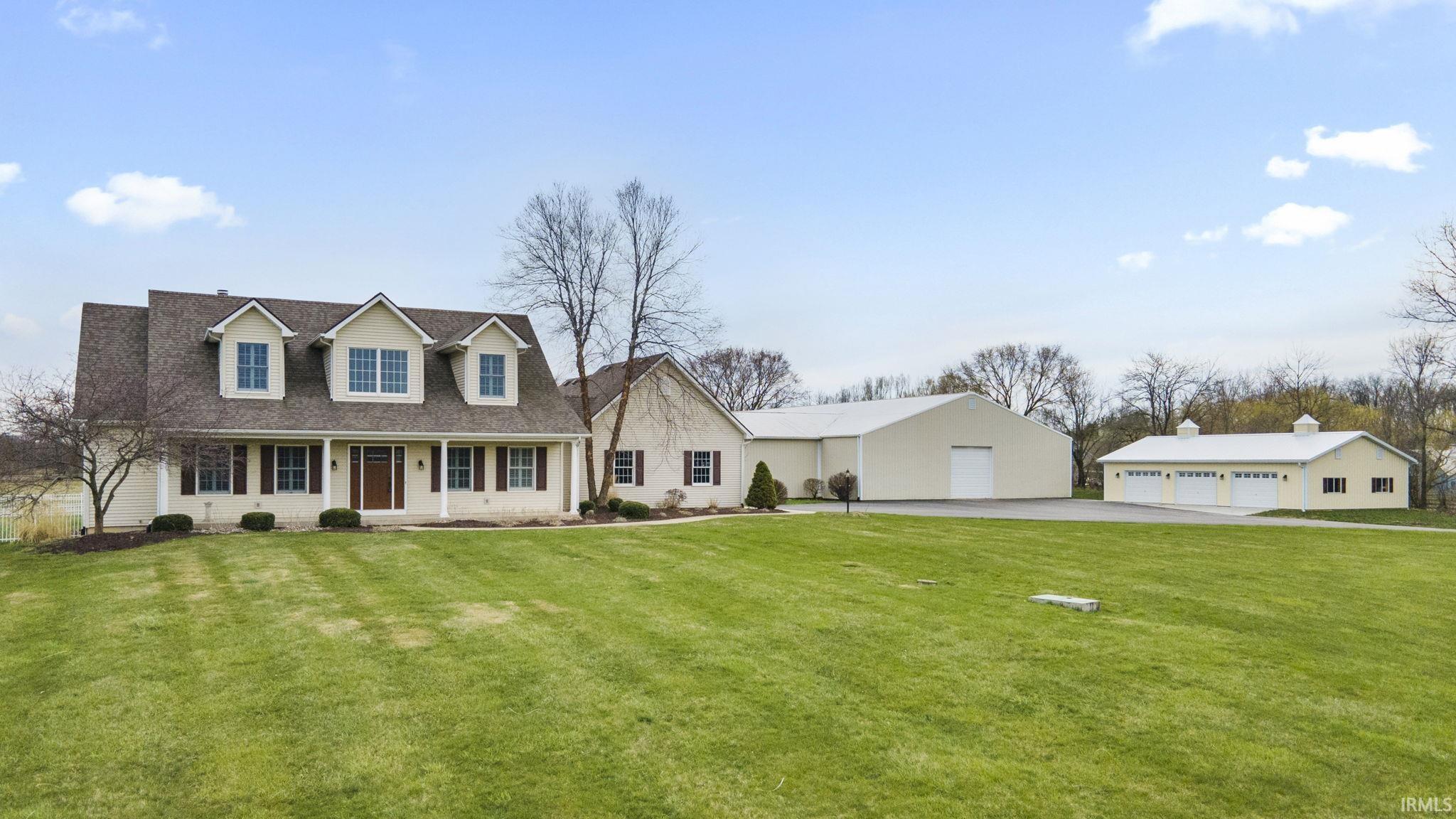 Must see listing of a lifetime. This wonderful Cape Cod style home near Huntertown in the desirable NACS is on 10-acres of land and is sure to catch your eye. Upon arrival you will be elated to notice the grounds are in impeccable condition. The covered front porch is warm and inviting and you can already imagine enjoying your morning coffee with this lovely country scenery. Would you believe there is over 4,000 sq ft to call home? Step inside and enjoy the breathtaking high ceilings as you enter into the foyer. You will notice the formal dining room right as you walk through the door, which could also double as a study or playroom. Continue along to the open concept family room where you will find a charming fireplace and an abundance of natural light connecting to a large breakfast nook. Take a glance out the sliding doors to find a lovely patio and fenced in yard perfect for grilling your favorite food and entertaining guests. The breakfast nook leads right into kitchen where you will find a generous amount of cabinet space, a splendid breakfast bar, and a perfectly sized pantry. Stroll along to the master bedroom conveniently located on the main level. Connecting to its luxurious bathroom with a glass tile shower, jetted tub, double vanity, and great views of the property; this spacious domain screams relaxation. Head upstairs where you will find 2 additional and generously sized bedrooms. The carpet is on the newer side and in excellent condition. A convenient Jack-and-Jill bathroom located between the two bedrooms which includes an adorable window seat. Finally head downstairs to the basement where you will find and abundance of space! So many opportunities with this amazing spot. Accompanied with another full bath, and out-of-sight storage with a workshop area, this place is a dream. Make sure you check out the interior shutters on all of the windows. BUT WAIT! Did we mention the Horse Barn with 4 stalls, tack room, shower stall with instant hot water, huge 60x120 indoor riding arena, sand paddocks (no mud), stainless steel gates and 3.5+ acres of pasture enclosed by electric fence horse tape. Don't miss out on the new detached 30x48 garage. You are really going to have to see this place for yourself to see ALL that is has to offer! Schedule a showing today, before it's too late!