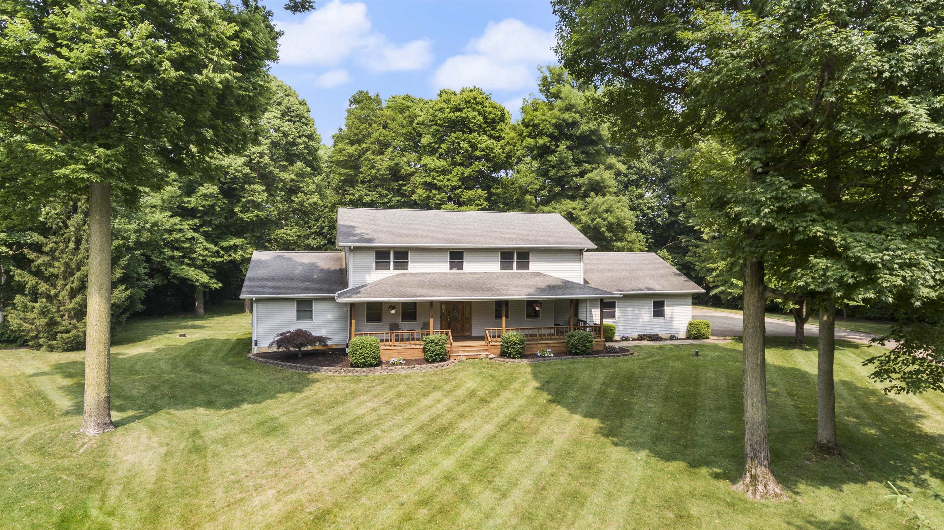 Rare offering on 1.2 acres partially wooded lot in Quail Run Subdivision. Enjoy this expansive home loaded with possibilities. 4 Bedrooms, 3.5 baths, 3 car garage and additional office space make this a great option in Warsaw! Explore the covered porch which stretches the full length of the home and enjoy shade from all the trees on this lot located just off a back cul-de-sac and backing up to farmland behind the lot. Seclusion and serenity surround you- The backyard is an oasis of nature with a fire pit at back edge and lots of room to roam and host backyard parties. Inside you will find a somewhat traditional floor plan with a modern spin to it. There is an office and formal dining room off the foyer, walk forward on the tile flooring and enjoy the open and airy great room. Natural light flows into this space and makes it a great place to gather. The breakfast nook is just off the kitchen and the kitchen is complete with all stainless appliances.  Laundry room and half bath complete the space on this side of the home. The primary suite is in the north end of the home featuring a large primary bathroom and walk-in closet and bedroom overlooking the backyard. Upstairs you will find a great loft area and study area as well as 3 spacious bedrooms and a full bath.  In the Lower Level- you will find a large family room, wet bar, pool table and great entertaining space. There is a craft room and bedroom/2nd office off the craft room with an egress window that could make this a 5th bedroom with a closet installed.  Storage area and steps to garage, as well as utility area are the balance of the square footage on this level. This is a must see for Warsaw if you are looking for room to roam and a great mature neighborhood- this property has a lot to offer.