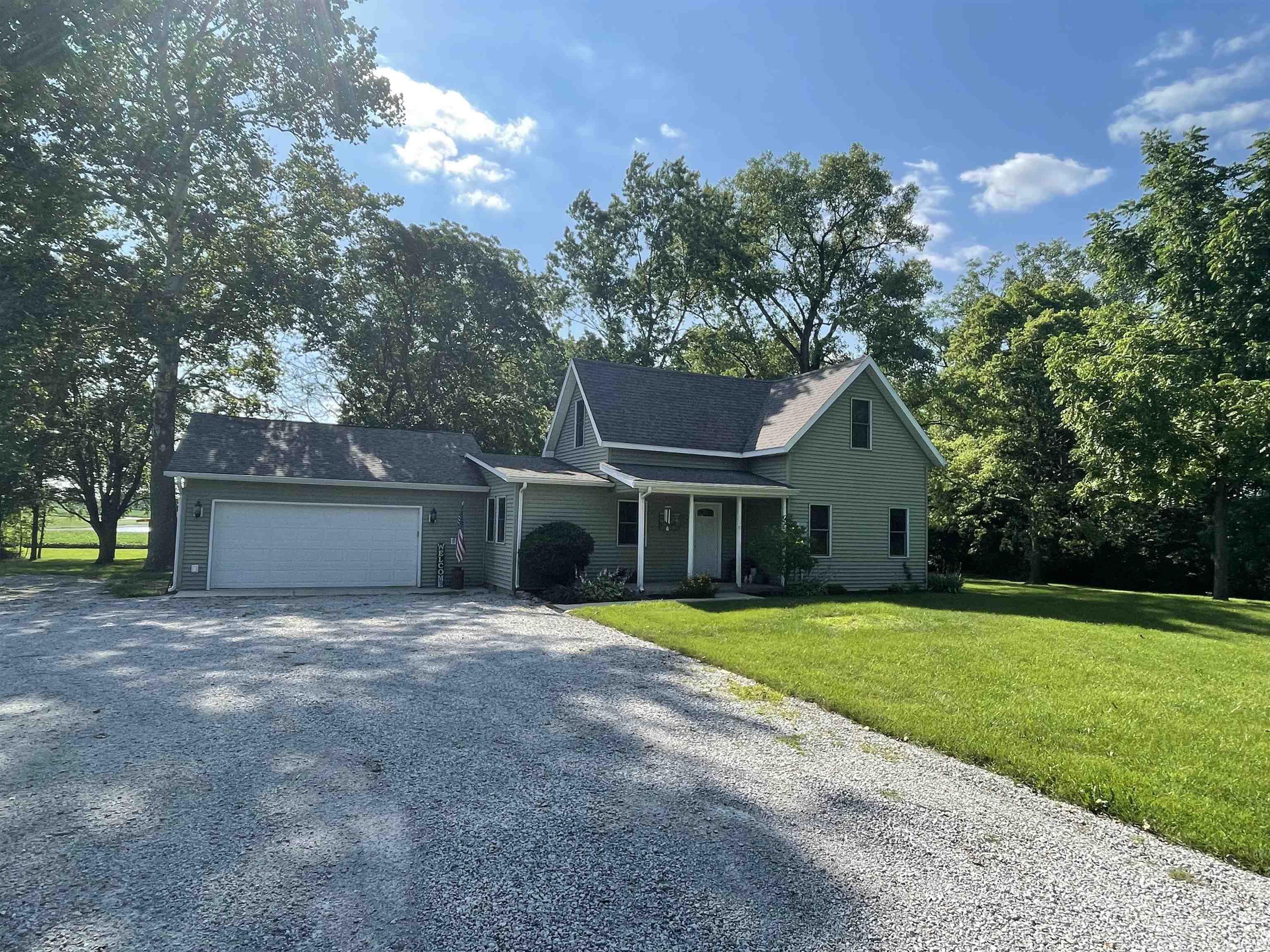 Adorable country home with a prime location! This 1584 sq ft, 3 bedrooms, 1.5 bath updated home sits on 3.33 acres. A 700 sq ft, unfinished, dry, basement makes for a great storage area or a home gym. The attached 24 × 24° garage fits two cars comfortably, keeping your vehicles safe from weather year-round, still leaving space for storage! To the back of the property is a 16 × 22' detached garage with electrical, giving you more storage that is great for mowers, utility vehicles and outdoor toys. Home was updated in 2009 with new windows, doors, siding, electrical, plumbing, septic, roof, furnace. The garage and deck were added in 2013 and in 2019 the upstairs was ripped down to studs re-insulated and re-modeled. Price includes washer and dryer (bought brand new in 2018), refrigerator, stove, and dishwasher (bought brand new in 2021). Rabb Kentico water softener with reverse osmosis water and well were also replaced in 2021. Sit on the 16'×16' back deck in the evenings and enjoy the sunset. This spacious property includes approximately 1 acre of woods with an abundance of wildlife. Don't miss this home that gives you private country living with the convenience of a nearby town, located just 1.5 miles from downtown North Manchester!