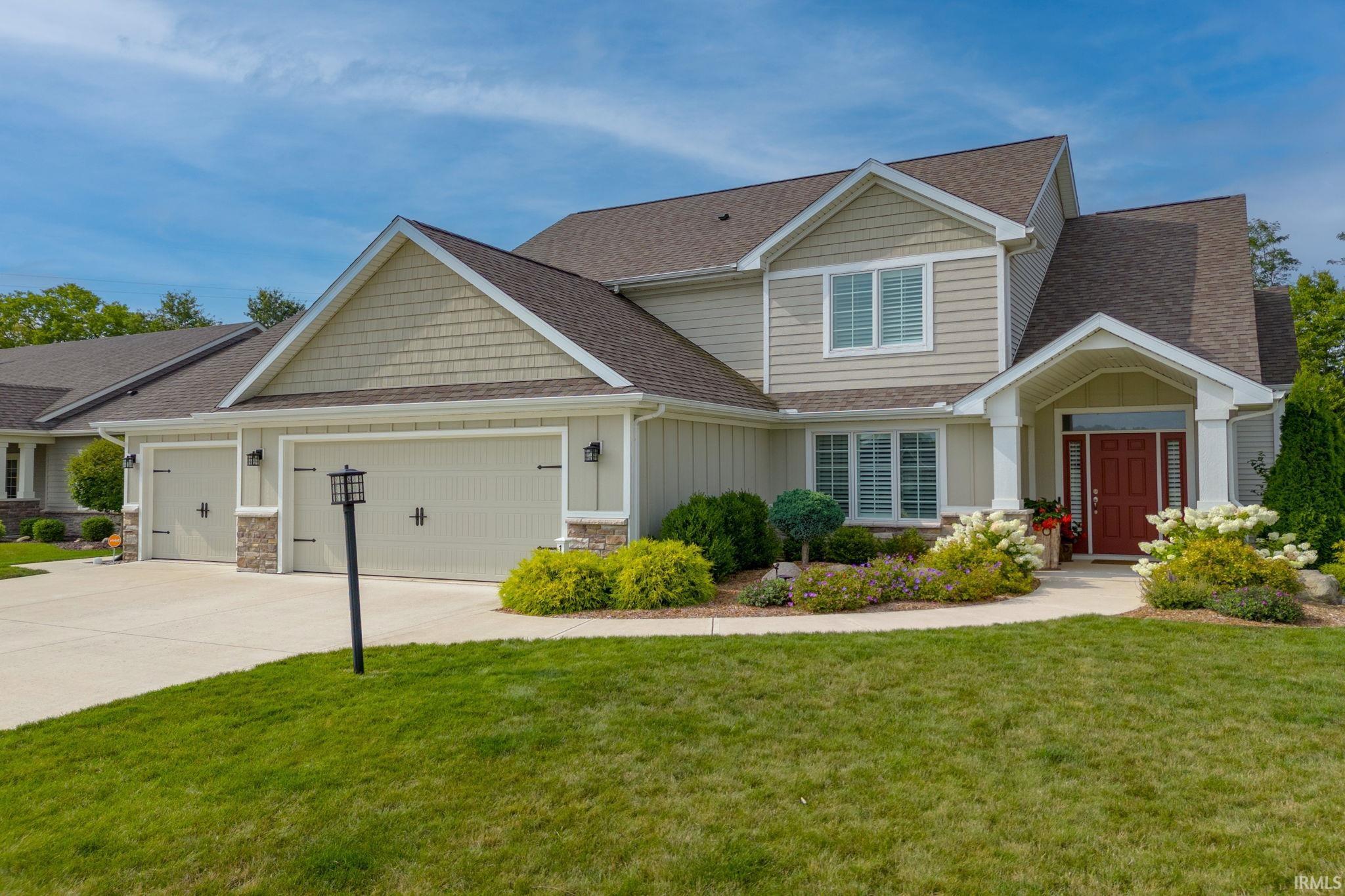 Honey- stop the Car! Perfectly on-trend and spacious, this 1.5 story home offers 4 bedrooms and 2.5 bathrooms and an almost 1/3 acre lot! The Great Room has a coffered ceiling, a floor-to-ceiling stone fireplace, and laminate flooring, plus a beautiful wall of windows providing wonderful views to the private back yard and an abundance of natural light. The layout is open to the custom kitchen, where you'll appreciate the white cabinets, quartz countertops, backsplash, and breakfast bar. The foyer and dining room/office have wanes-coating & crown molding. The primary suite is on the main level and has a trey ceiling, and the bathroom has a tile shower, double sinks, built-in dresser, and walk-in closet. The 3 upper level bedrooms are quite spacious, measuring 14x14, 14x13, and 11x10. Enjoy the spacious backyard complete with a 26x24 concrete pad lined for basketball, or riding tricycles, or relax under the 13x12 covered porch. The fully landscaped lot enhances the beautiful setting. Additionally there is a 16x10 concrete patio on the south side of the garage. The 3 car garage has an extended 3rd bay (918 SF) & offers plenty of storage, and the workbench remains! The location is ideal for those wishing for the highly desired Leo School area while remaining minutes to hospitals, highways, shopping and restaurants...2 miles to Parkview Regional Medical Center and I-69. This home has everything you need plus all that you want! Inside photos coming Saturday 8/19.