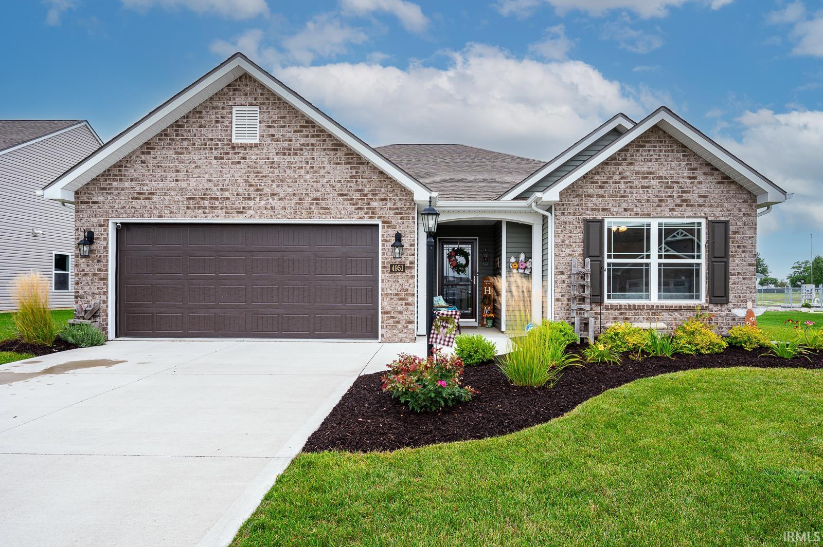 Don't miss this 3 year young ranch home in the desirable NWAC school system. This impeccably kept 3 bedroom 2 bath home offers all of the benefits of a new built home without that new build price tag. Walk through the front entrance into the long, well lit foyer/hallway. Off to your right sits the first 2 bedrooms and full bath (this home has a split floor plan offering extra privacy for the master ensuite). To your left you will find a spacious dining area that can easily serve as a home office, or second living area. The front entrance leads you directly into the spacious open concept great room with connecting kitchen and kitchen nook. The bright kitchen has plenty of cabinet and counter space, and comes with Stainless Steel appliances. Step out back through the sliding glass door, onto the concrete patio and enjoy outdoor living in the large fenced in back yard. Off the great room sits the master ensuite boasting double sinks, a separate walk-in shower and tub, private toilet area, and walk in closet. Off the kitchen is a nice sized laundry room with plenty of room for extra storage that conveniently connects to the attached 2 car garage. Commercial grade vinyl plank flooring was installed in 2022 throughout all of the main living areas. Newly installed ADT Security System stays and includes FOUR cameras, and security sensors on each door and window throughout the home. Every window is also equipped with custom made black out blinds. New 8k aluminum fence was installed in 2021. Don't miss this completely move in ready home near I-69, shopping, and tons of great restaurants. Be sure to check out the 3-D tour!