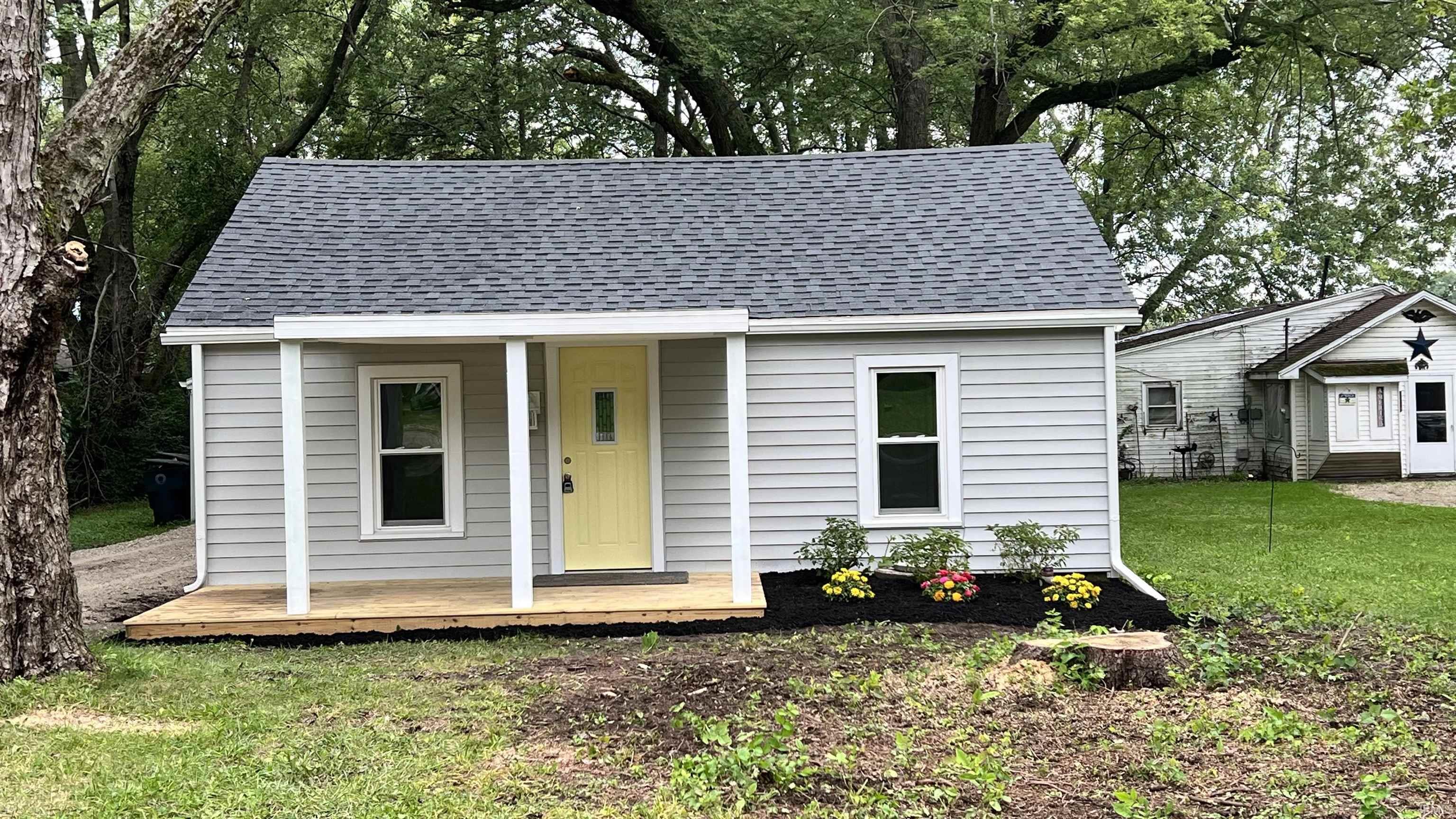 Remodeled down to the studs! Nice 3 bedroom, 2bath home with a double lot. New roof, windows, 200 amp electrical service, GFA/CA, Gas water heater, flooring, lighting, kitchen and bathrooms. Kitchen counter top are butcher block. Master bath has a ceramic tile standup shower. 1 car detached garage. Nice front and back decks to enjoy the summer evenings. Back lot is all wooded