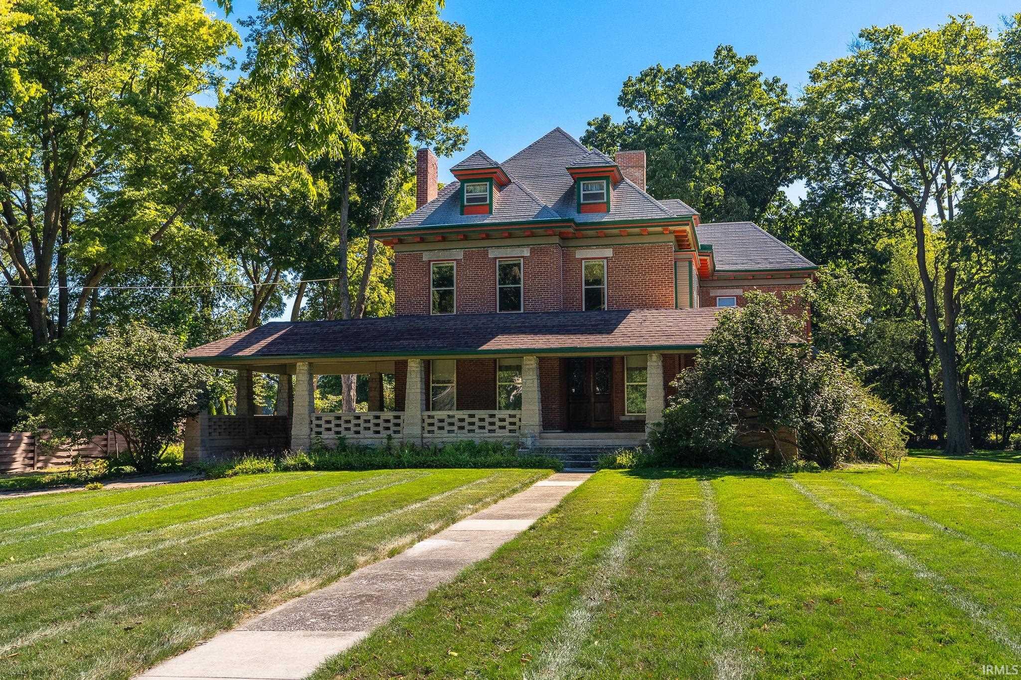 Here is a true “statement home” located in historic Delphi, Indiana. Located in Delphi’s “South Hill” neighborhood, this home is three blocks from the elementary school, 15 minute walk to the high school, and Riley Park is two blocks away and can be accessed from the property using the “Ox Path” (in the 1800’s farmer brought their grain to the Red Mill on Deer Creek using the Ox Path). The original home was built in the early 1860’s by a farmer named Robinson and was lost through foreclosure in the late 1890’s. The local banking family took ownership and performed significant renovation in the style of the day. It has been known locally as a “Bowen” house and is one of three “Bowen” houses remaining in the community. The current owner bought the property in 1986 and raised their four children there and are selling as they have relocated to Southern Indiana. Unlike many grander houses of the day this home is not ostentatious in any way. There is a subtle practicality and dignity to the home that speaks of Midwestern values and culture. In addition to oak floors, (some carpet upstairs although hardwood underneath that carpet) there are double oak entry doors, stained and beveled cut glass, two large fireplaces, coffered ceiling in master bedroom downstairs, enormous pocket door and French doors in the parlor/music room, formal dining and living rooms……and all arranged in a very functional and efficient floor plan. Living and dining rooms have fireplaces faced with European tile. A new(2023), Lochinvar furnace powers the hot water radiant heat, Lochinvar 50 gallon water heater new 2023, electrical service upgraded to 200amp(separate 100amp on second floor) 2016, ALL plumbing supply lines replaced with PEX lines and a central control manifold in 2016. The whole house Generac generator(20kw) adds a level of security and safety. The site is quite unique for in town properties being 1.69 acres. The second floor hosts a jack and jill bath as well as a separate “mother in law” suite with separate entrance and kitchen, bath, bedroom and living room. That is a real benefit either for Air B&B, your mother in law, or guests.