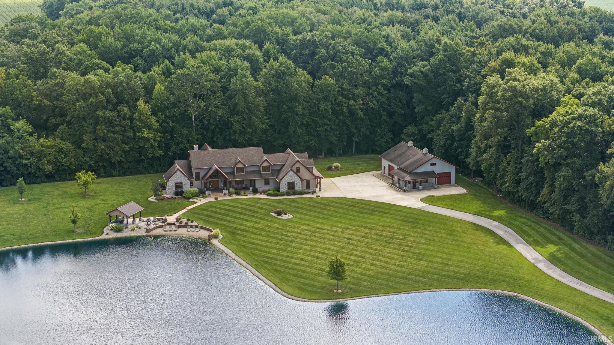 This luxury lodge style home will make you feel like you’ve been transported to your own private retreat.  Every detail has been carefully planned to make this home truly a one-of-a-kind.  Perfectly situated on 14 acres you will enjoy 6 acres of woods, a 3-acre stocked pond and plenty of privacy.  The moment you walk in the door you are greeted by the breath-taking view.  Your most difficult decision will be where to spend your time; relaxing in front of the large stone fireplace, pampering yourself in the spa-like master bathroom or preparing a decadent meal in your gourmet kitchen.  Maybe you’d like to enjoy a glass of wine on your covered patio with outdoor fireplace or unwind with a movie in your private home theater.  Invite guests over and spend time in the outdoor pavilion overlooking the pond.  There are so many ways to enjoy this home, you will feel like you are on vacation.  As if the home isn’t enough, you will also have an additional 4,200sqft barn complete with a climate-controlled wood shed, workshop, bathroom, and 2nd level.  This home is so feature rich that they can’t all be included in this description.  Please see the attached document that highlights many of these features.  This home needs to be seen in person to truly appreciate it.