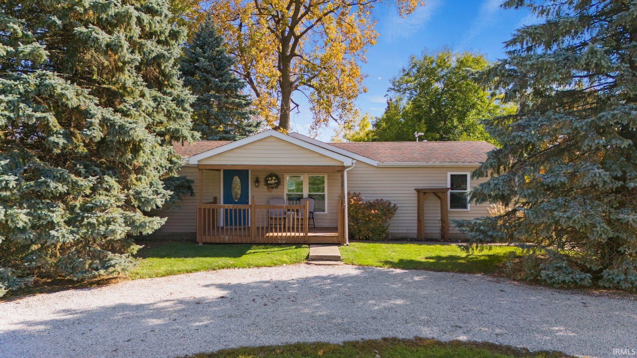 Welcome to this charming 3-bedroom, 2-bath home in the heart of Harlan, IN. As you approach, you'll be greeted by a delightful covered front porch, setting the stage for the warm and inviting interiors that await. Step inside, and you'll discover an expansive, open-concept living area that seamlessly combines the living room, kitchen, and dining spaces. The centerpiece of this home is undoubtedly the custom breakfast bar, a true masterpiece in design and functionality, offering ample storage all around. The kitchen boasts custom cabinets with soft-close drawers and high-quality hard surface countertops, making it a chef's dream come true. Privacy is paramount with the cleverly designed split floor plan, ensuring the primary suite is a peaceful retreat separate from the other bedrooms. A spacious bathroom lies between the second and third bedrooms, providing convenience and comfort for all. Storage enthusiasts will appreciate the abundance of built-in storage in the laundry room, and there's the added bonus of outdoor access for added convenience. Stepping outside from the dining area, a generous 15x15 wood deck beckons, overlooking a picturesque backyard that comes complete with two spacious storage sheds. Don't miss out on the opportunity to call this lovely home yours.