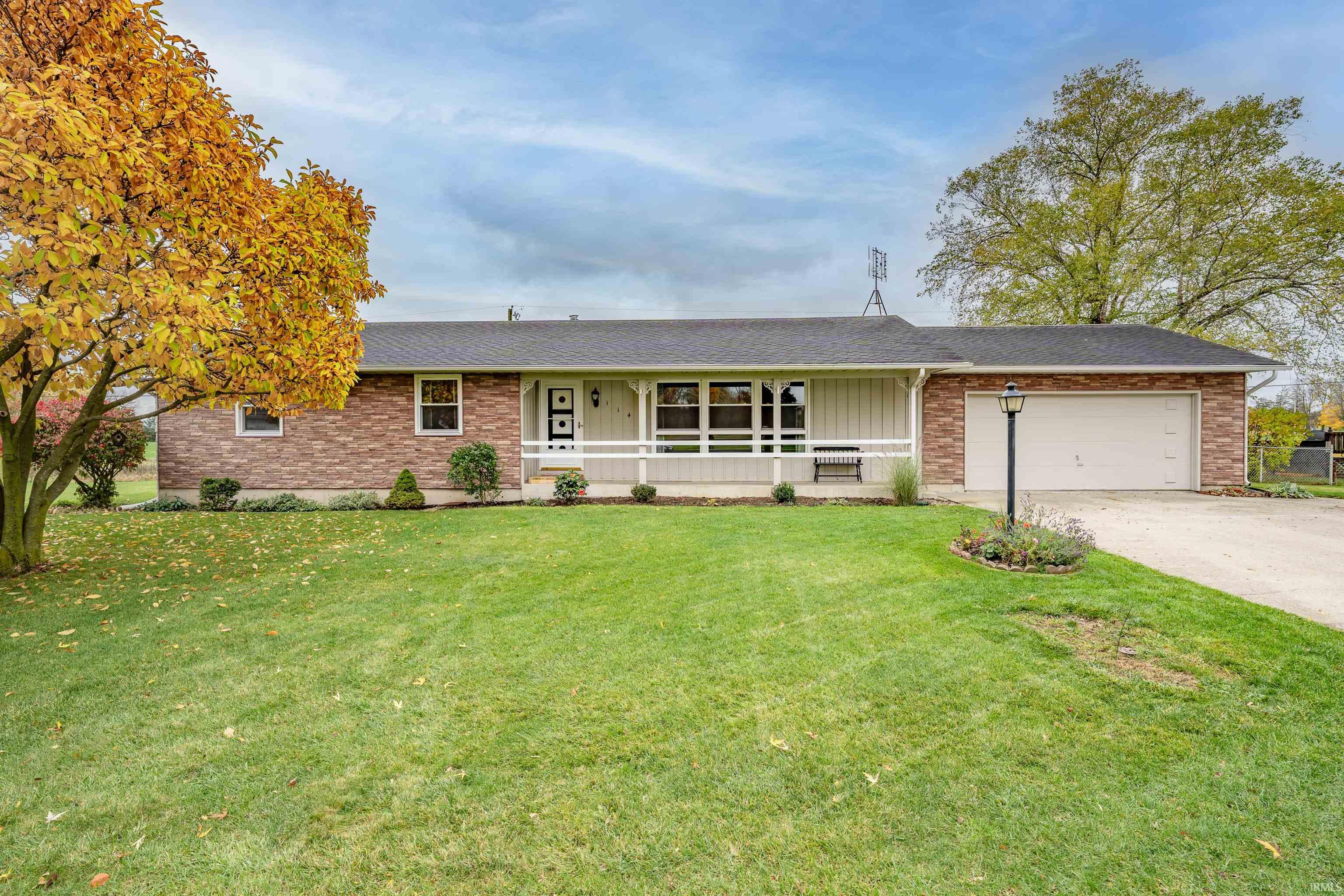 OPEN HOUSE SUN 12TH 1-3 Welcome home to this move-in ready ranch boasting a finished basement & scenic back yard views plus a bonus next door lot with your very own pear trees! Located in a quiet & peaceful area with zero through traffic at the edge of Monroeville less than 10 minutes from the Ohio border, this 3 bedroom, 2.5 bath home is nestled on almost half an acre & backs up to an open field alongside the empty neighboring lot which affords you more privacy as well as stunning nature views. Well maintained from outside in, the attractive exterior is mix of board & batten with stone facade, select landscaping elements, attached 2 car garage & an inviting covered front porch with room for hanging with friends or watching the neighborhood roll by. Inside you’ll find a warm & welcoming atmosphere & a spacious living room with tons of natural light from big picture windows. Charming dining room provides meals with a view to open countryside with solid oak custom cabinets & build-ins; wrap around counter separates dining from kitchen with abundant cabinetry. Generous primary bedroom has a walk-in closet & en suite bath with a corner walk-in shower. Remaining 2 bedrooms (all but one are carpeted) are both comfortably sized with ample storage throughout. Laundry, pantry & half bath in breezeway off kitchen with door to back yard. Downstairs might just be the retro basement of your dreams! Built in 1969, this space is a blast from the past complete with a wood burning stove to keep you cozy all winter long & a super groovy are with wood paneled & stone covered walls. Basement is quite expansive with several different rooms & plenty of space for a 2nd living, home theater, rec & home office/studio/gym in addition to a sizable dry storage room. Perfect for entertaining there is so much potential for down here! Back yard has a cement patio great for dining al fresco or simply relaxing & enjoying the fresh air & surrounding nature. Yard immediately behind house is completely surrounded by a chain link fence while the neighboring lot is open with a garden area where you can test your green thumb. Walking distance to Splash Pad with nearby Town of Monroeville Trail Head. Approximately half an hour to Fort Wayne for your grocery, dining & shopping needs. Excellent opportunity to own a piece of beautiful American countryside—don't let this one slip away, reach out today!