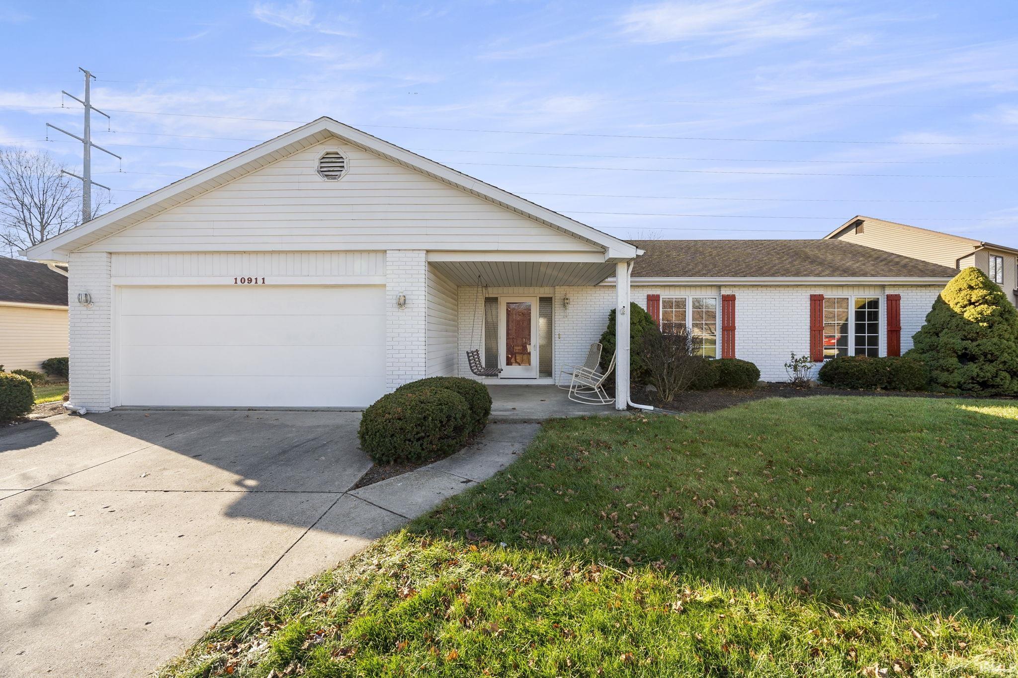 Fresh paint and carpet greet you as you enter this beautiful ranch home located in Longwood, near Dupont / Auburn Rd in Northwest Allen County Schools. The 23x17 great room is sure to please with a corner gas log fireplace, brick surround, and built-in bookcases. The kitchen and nook have tile flooring, plenty of countertop and cabinet space, a gas oven, newer dishwasher & refrigerator, and pantry storage. Nearby there is a set apart laundry room (the washer and dyer stay) with a 1/2 bath. The master suite has a 14x13 bedroom, and adjoined bathroom. The other 2 bedrooms are 13x11 and 11x10. There is a full bathroom on the hall as well as a linen closet. The enclosed porch offers another room when the weather permits, and leads to the 13x11 no maintenance patio. There is a 2 car garage with a 9' extension to house the furnace, water heater and water softener, and pull down steps to access attic storage. This spacious 3 bedroom, 2.5 bathroom home on a cul de sac location .36 acre lot (invisible fence in backyard) has so much to offer so book your showing today. Possession at closing!