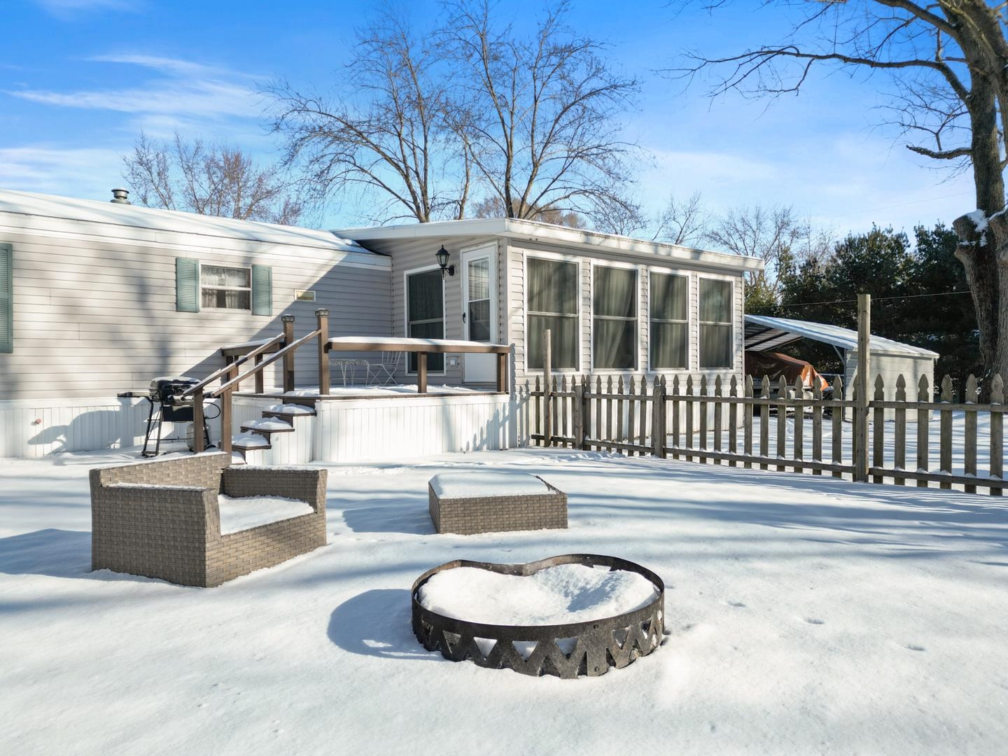 Quiet Mobile Home in Barbee Lakes Area! This home was built in 1998 and offers quick access and close proximity to the Barbee Chain of Lakes where you could rent a pier space and enjoy boating all summer long! The home features a 4 season Room that may end up being your favorite place to gather - A deck is off the back of the porch and you can enter into the rest of the home from the 4 season room. There are 3 bedrooms and 2 full baths with a split floorplan in this home. The kitchen comes with all the appliances and the washer/dryer remain in the laundry room. You can live here year round or utilize it as a vacation destination. This is a quiet area and just a few homes in this area. Lot is large and has a carport and shed to store items. There is even small fenced in area for your four legged kids to come along too!