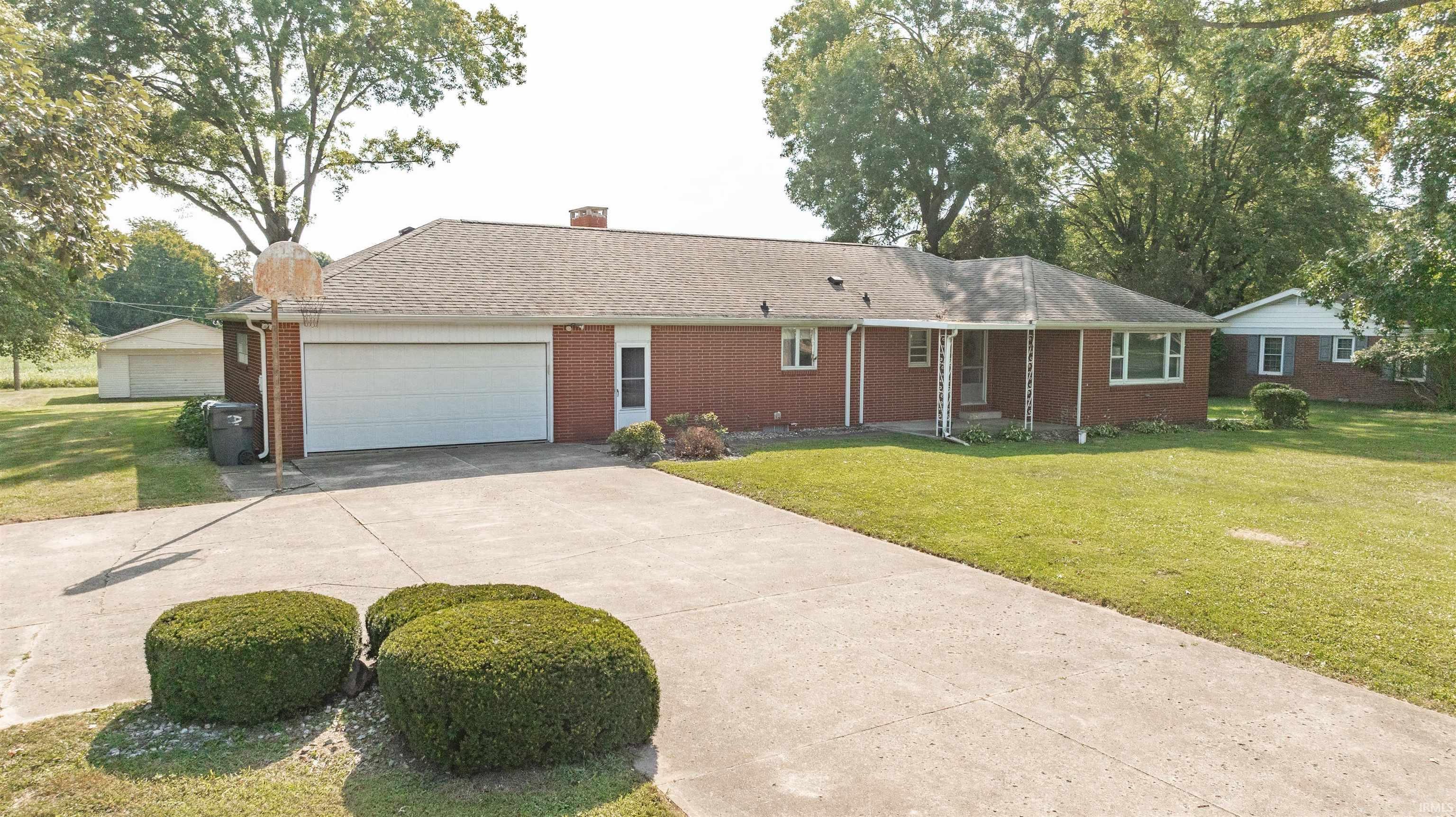 Don't miss out on this single-family residence ready for moving in and begging its new chapter. The living room is designed as a focal point for relaxation and gatherings, enhanced by a fireplace that promises warmth and a beamed ceiling that adds architectural interest. The newly installed waterproof luxury vinyl plank that has been installed throughout the first floor accentuates the aesthetic of the brilliant wood cabinets, wood trim and freshly painted walls, creating a space that is both functional and visually pleasing. All of the kitchen appliances, including a brand new stainless steel refrigerator are included. The sunroom offers a tranquil retreat, bathed in natural light, ideal for quiet moments or vibrant conversations. The home features three bedrooms and two full bathrooms, thoughtfully designed for comfort and privacy. One of the bedrooms includes an ensuite bathroom, offering a private space for relaxation and convenience. The unfinished basement has a beautiful wood burning, brick fireplace and the laundry set up. You'll have plenty of storage space with the 2+ car attached garage and the 2 car detached garage. This brick ranch on a full basement that sits on 0.72 acres was built in 1965 when homes were built to last. It offers a blend of classic charm and modern convenience, making it an appealing place to call home.
