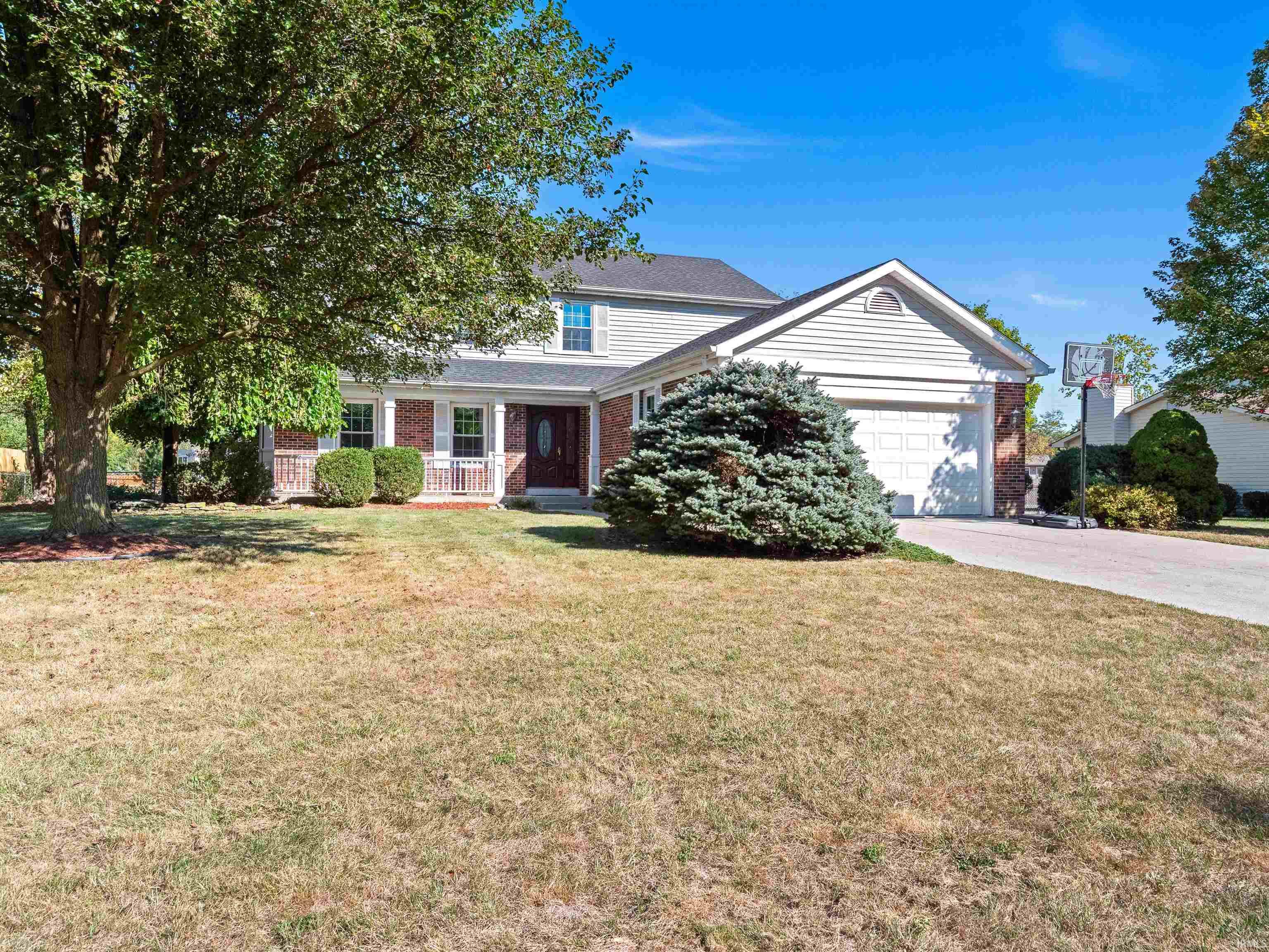 Welcome Home to 1419 Deerbrook Court! Nestled among the desirable residences of Old Creek, this beautifully maintained 4-bedroom, 2.5-bath home offers over 3,100 finished square feet of comfortable living. You’ll be greeted by a charming covered front porch and an upgraded ThermaTru front door that opens to a spacious tile foyer. The main level features multiple living areas, all with new carpet. The inviting family room includes a gas log fireplace and a convenient wet bar—perfect for entertaining or cozy nights in. The kitchen and breakfast nook showcase a breakfast bar, under-cabinet lighting, Wilsonart countertops, and stainless steel appliances, while the formal dining area highlights new paint and flooring for a fresh, modern look. Upstairs, the owner’s suite provides a private retreat with a walk-in closet, dual vanities, jetted tub, separate shower, and a laundry chute. Three additional bedrooms and a full bath complete the upper level. The finished lower level expands your living options with space for a home gym, media area, or recreation room—plus plenty of storage. Notable upgrades include a whole-home generator, high-efficiency furnace, new windows and sliding door (2023), new interior paint and carpet throughout, water softener, whole home water filtration system, and a complete tear-off and new roof (June 2025). Enjoy proximity to the River Greenway Trail, Bluffton-Harrison Schools, Oubache State Park, and convenient shopping and dining. Come see why this house should be your next Home