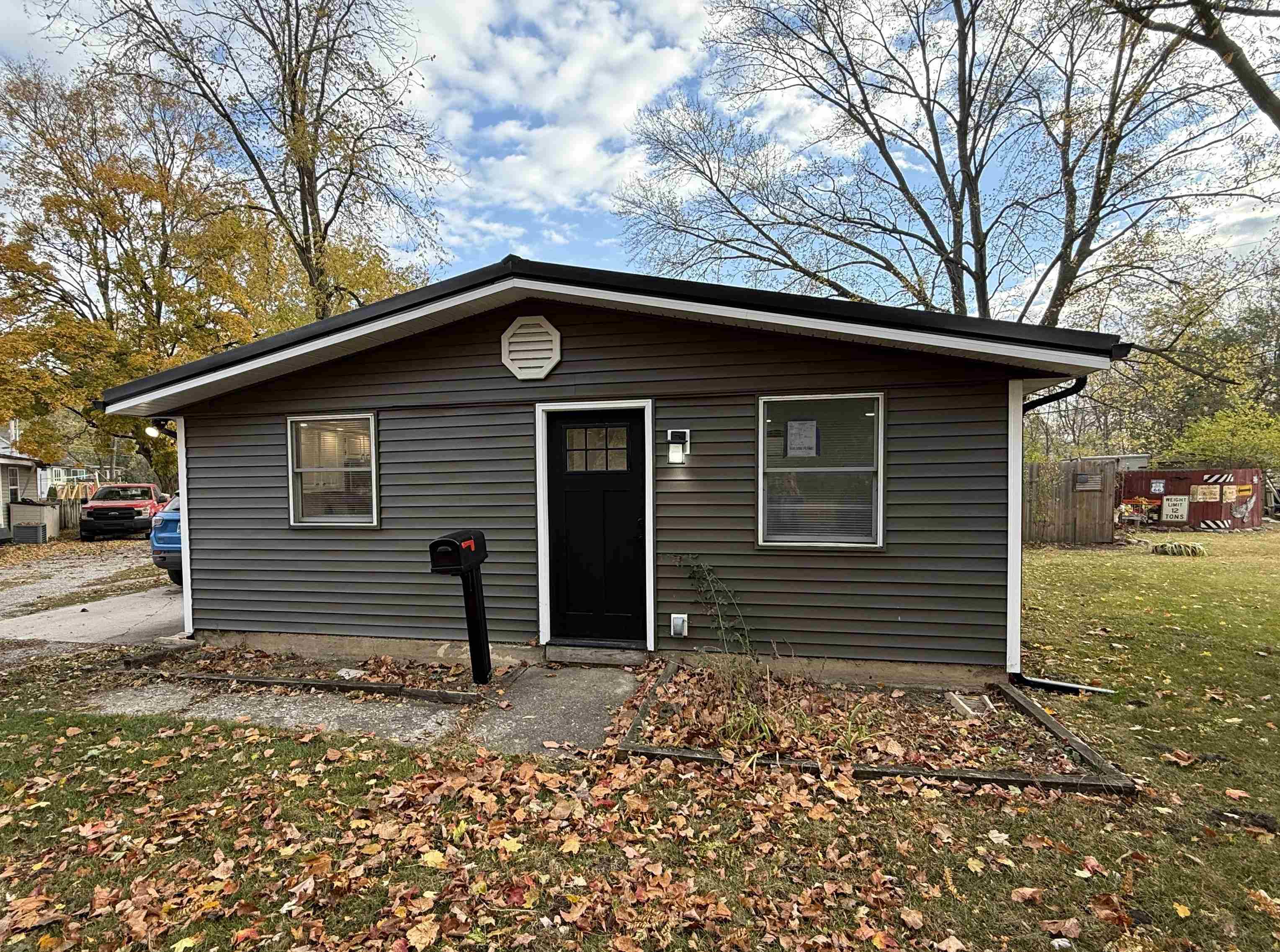 This beautifully updated home is move-in ready from top to bottom! With all new siding and a brand new metal roof with gutters and downspouts, exterior maintenance will be carefree! Step inside to find a bright and inviting living room featuring recessed lighting and a ceiling fan for year-round comfort. The updated kitchen offers brand-new laminate countertops, a double-basin stainless steel sink, and a complete suite of new stainless steel appliances including a Frigidaire refrigerator, electric range, and dishwasher plus a GE microwave. A cheerful dining area with plenty of natural light makes mealtime enjoyable. Both bedrooms feature brand-new carpet, ceiling fans, and recessed lighting. The fully remodeled bathroom showcases a new vanity and sink with tile backsplash, LED lighted mirror, new commode, vinyl flooring, and a brand-new tub/shower combo along with a spacious linen closet. The separate laundry room offers hookups for either gas or electric dryer and also houses the water heater for added convenience. Additional updates include new laminate flooring throughout the main living areas, ample fresh lighting, new front and rear entry doors, and new exterior fixtures. Enjoy the comfort of gas forced air heat and central air conditioning to keep you comfortable year-round. The large, level backyard includes a paver patio—perfect for outdoor enjoyment. A parking pad, new front porch light, and a convenient mailbox near the entry add to the home’s curb appeal. This property offers modern comfort and style with the benefit of low-maintenance living—everything is done and ready for you to move right in!